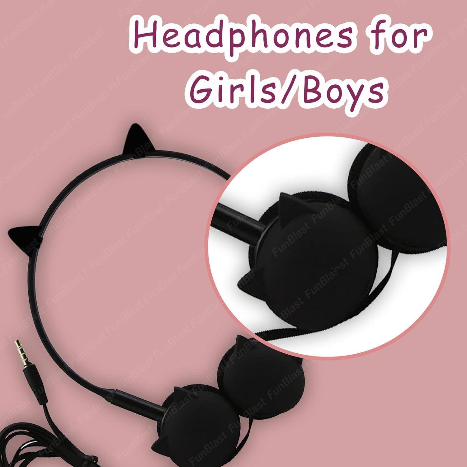 FunBlast cute cat headphones stereo headphones, volume control for mobile Phone/iPad, this headphone has a colorful pattern and soft earpads, which makes it more attractive.This wired headphone for girls feature adjustable headbands that make the kids cute cat headphones possible to fit it with girls at different ages.Cat headphones for girls can be used during traveling, in the car, school, airplane, online classes, video chat, answer the phone.This FunBlast headphones are capable of crisp, clear sound and bumping bass which make for a complete surround sound experience, providing an ear feast for your kids who enjoy listening to music.Specifications – Sensitivity – 105dB/mw, Cable Length – 120 cm, Connector – 3.5 mm, Noise Isolation – 24DB