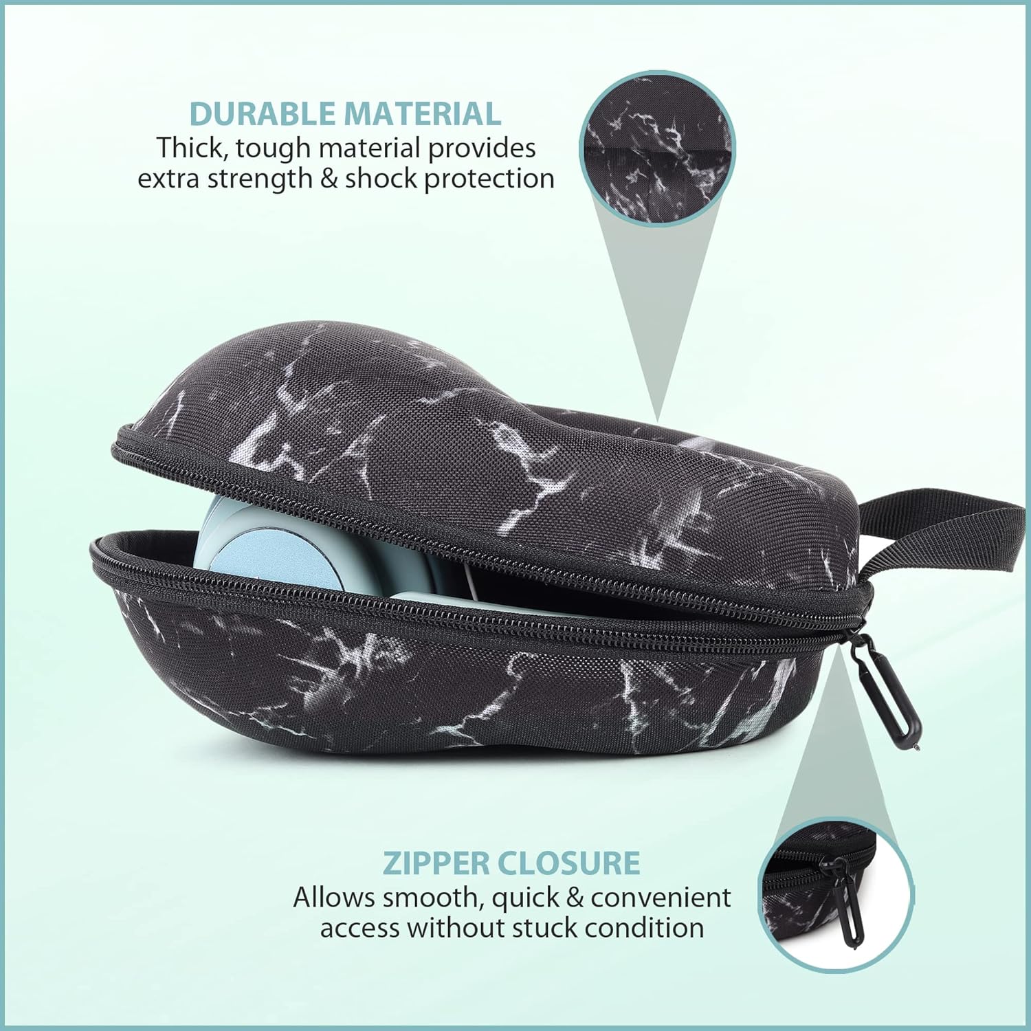 Perfect for travel When you’re on the go or traveling keep your headphones safe from damage and easily portable with the Full Sized Hard Body EVA Headphone Case! It gives you durable protection with Hard Body Shell and inside soft lining.