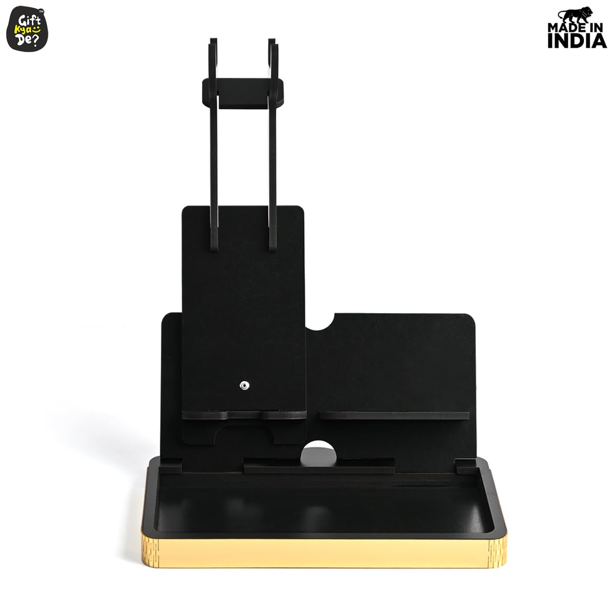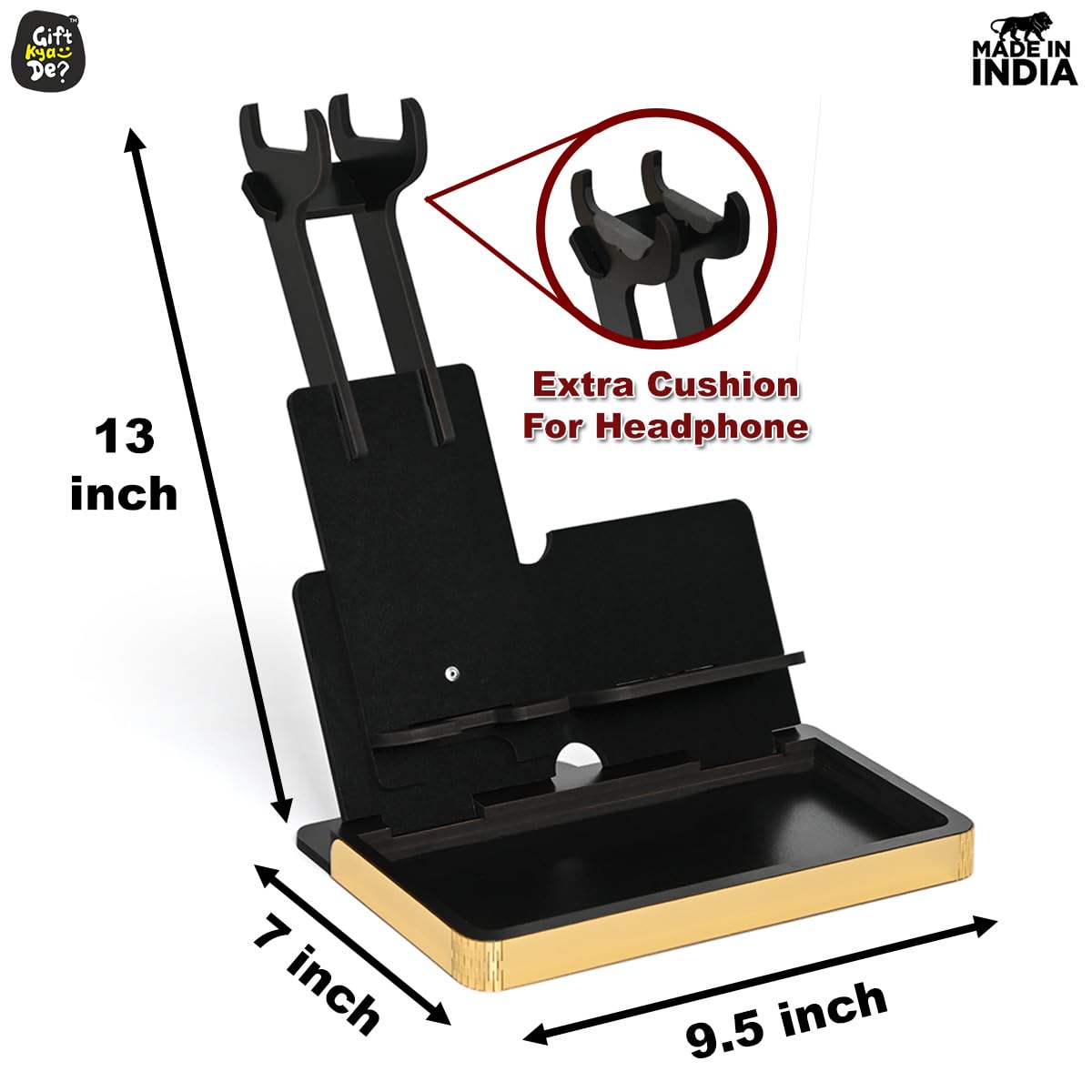 Gift Kya De GKD Headphone Stand for Desk Wooden Headphone Holder for Gamers Music Lovers, Portable Desk Organizer with Mobile Phone Stand Compatible with All Headphones Size (Black ecofriendly)