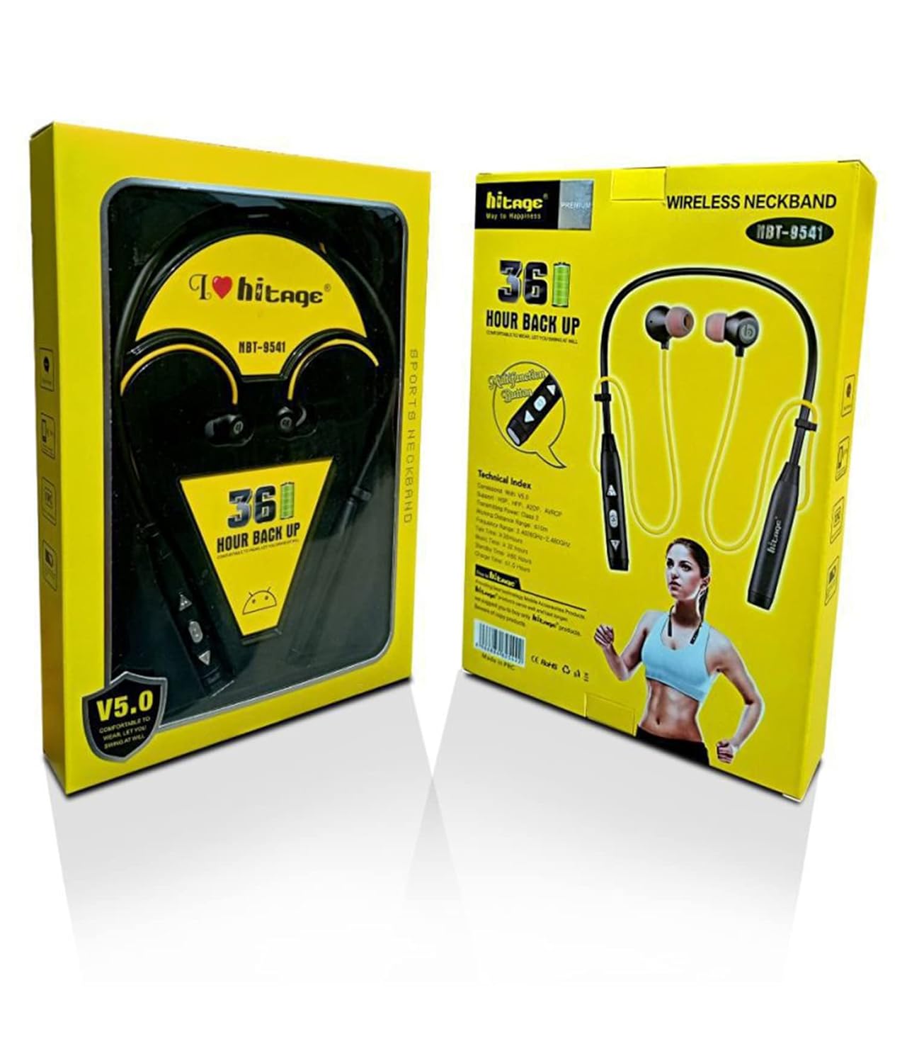 Hitage NBT-9541 Titanic Bass Series 26 Hours Play Time 36 Hours Talk Time 60 Hours StAnd By- Enjoy Wireless Music And answer phone calls in crystal Stereo Sound with this Bluetooth Earphone. It connects easily to your mobile phones, tablets, ios or other supported devices using Bluetooth 5.0 Technology And enables you to stream good-quality Stereo Music . ( Support : HSP, HFP, A2DP,AVRCP )( Transmitting Power : Class 2 ) ( Working Distance Range : 10m ) ( Frequency Range : 2.4026GHz – 2.480GHz ) ( Charge Time : 1.5 Hours )
