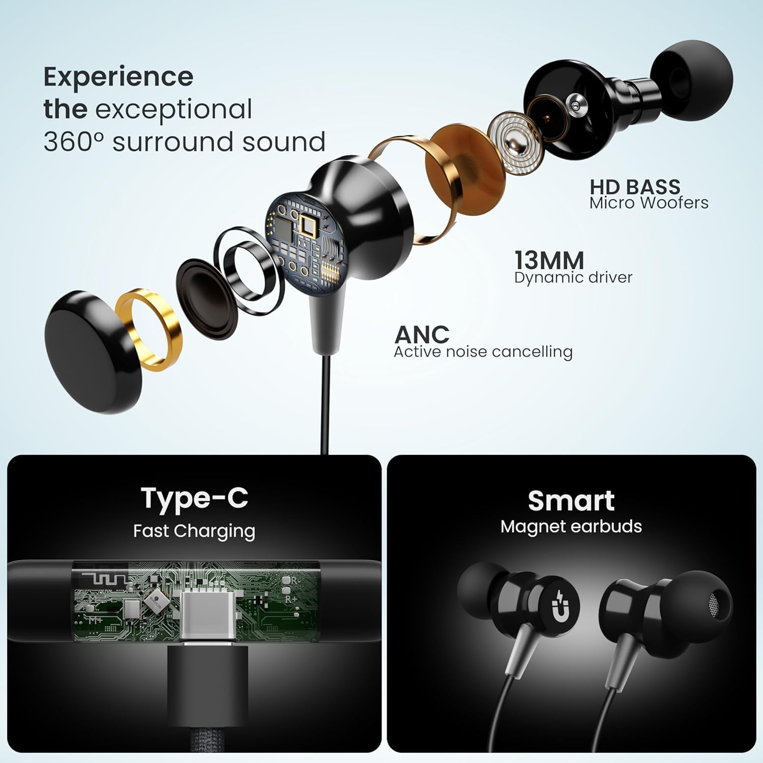 [ Powerful Bass & Rich Audio ] : Engineered for exceptional audio quality, our 13 mm drivers deliver rich and immersive sound. These Wireless earphones bluetooth elevate your listening experience with high precision and clarity