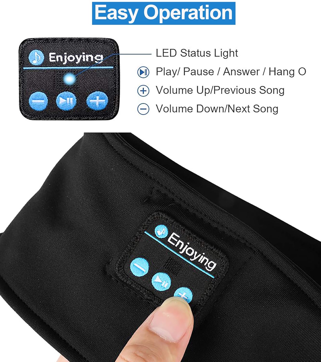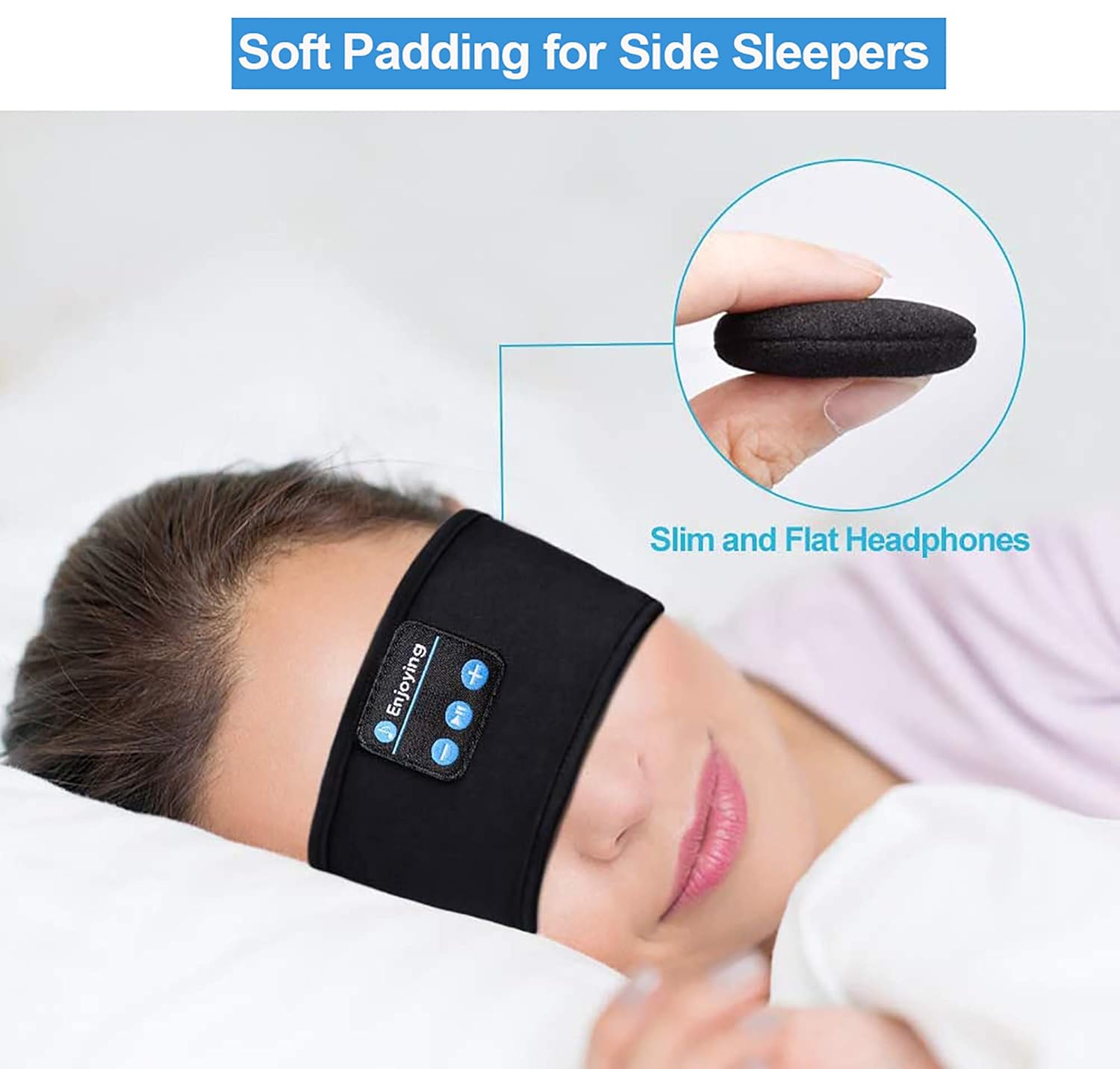 【Ultra Thin Speakers, Best Sleeping Headphones for Side Sleepers】Bluetooth Headband built-in 2 ultra-thin speakers, devices control module is in the middle of Sleep Headband, so it does not put pressure on the ears. Sleeping headphones are comfortable enough to wear while lying down or sleeping on your side . volume control buttons which enable users to answer hands-free phone calls and handle previous/next song without having to use your phone