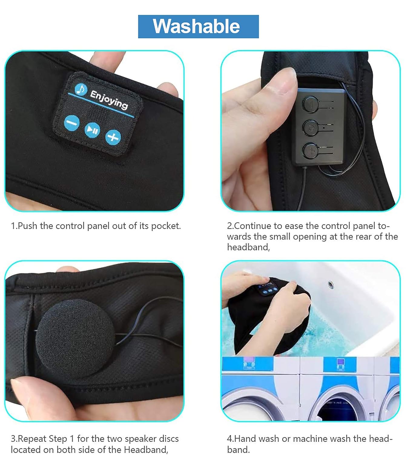 【Comfortable and Breathable Material, Washable】Bluetooth Headband is made of durable soft fabric which is breathable, extremely stretchable, fit most head size, what is more, it’s incredibly soft and hypoallergenic. Bluetooth sleep headphones is machine washable just remove control panel & inside speaker pods . This Bluetooth head band is a perfect gift ideal for men women father mother birthday Xmas . Note: Fits Head size of upto 9.7 inches . Repeated use and wash might loosen up the material
