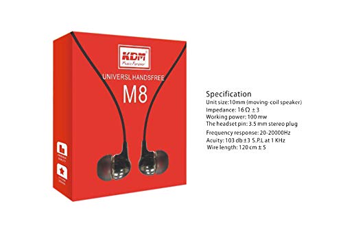 KDM ORIGINAL M-8 Earphone with Mic (Clear) Noise Isolation With Precise Bass , Hands free In line Microphone . Moving -Coil speaker