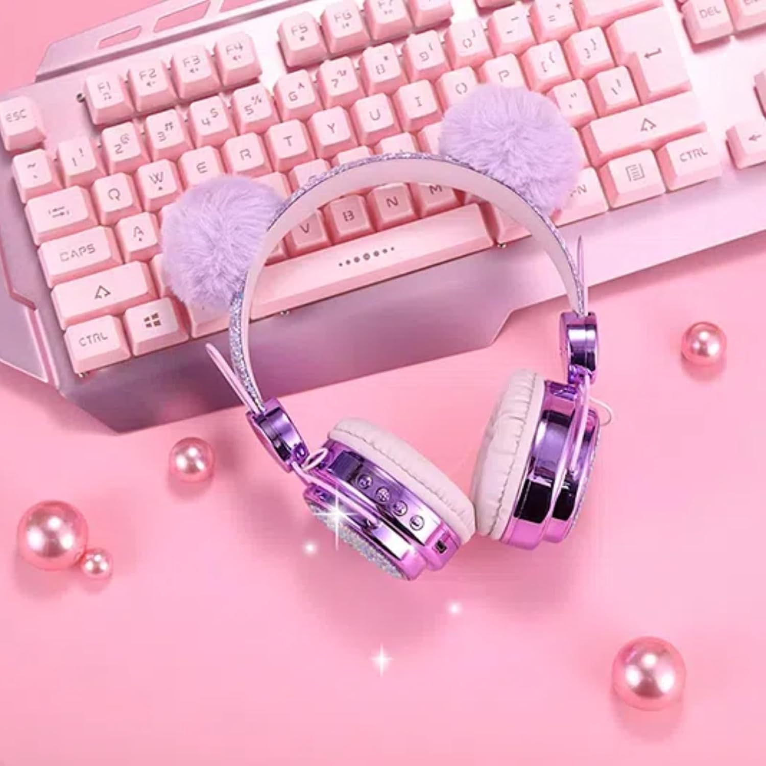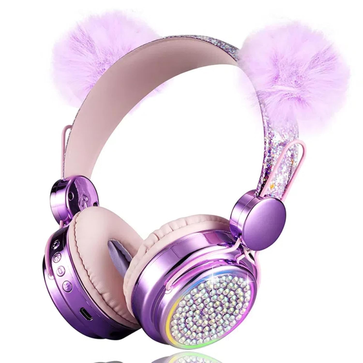 RGB Light up Kids headphones are a combination of practical functions and fashion elements of the headset product, designed for children: LIGHT: 1. Press the light button for 3 seconds to adjust the light on and off. 2. There are 3 light modes: color-changing light/single color light/flashing light (flash with music beat) Product Features: 1. Cute shape and Diamond earcups design 2. RGB Luminous elements: 7-colorful lights 3. Skin friendly and comfortable wear 4. Adjustable size: which can adapt to the head circumference of children of different ages. 5. Light weight and portable to carry out.