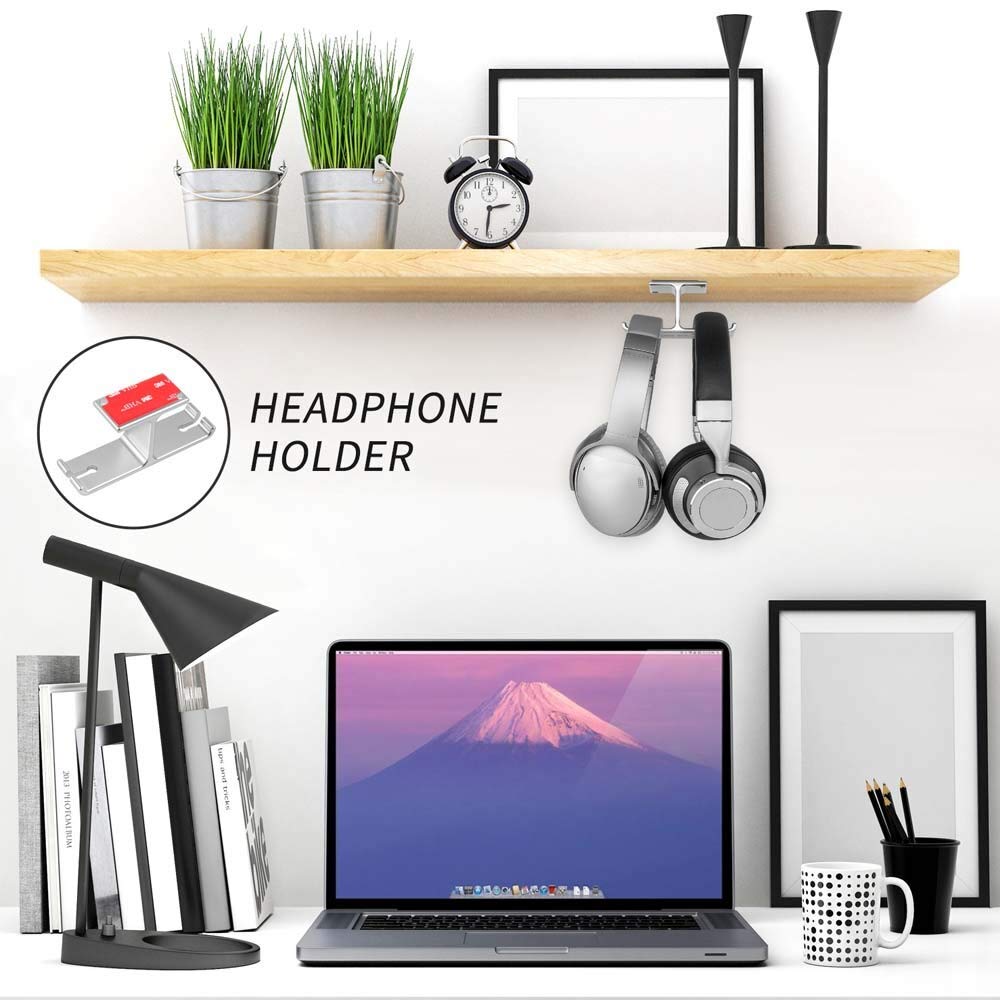 Space-saving: This small headphone hook with cable clip doesn’t take up any desktop space, giving you more space and keeping your desk clean and organized