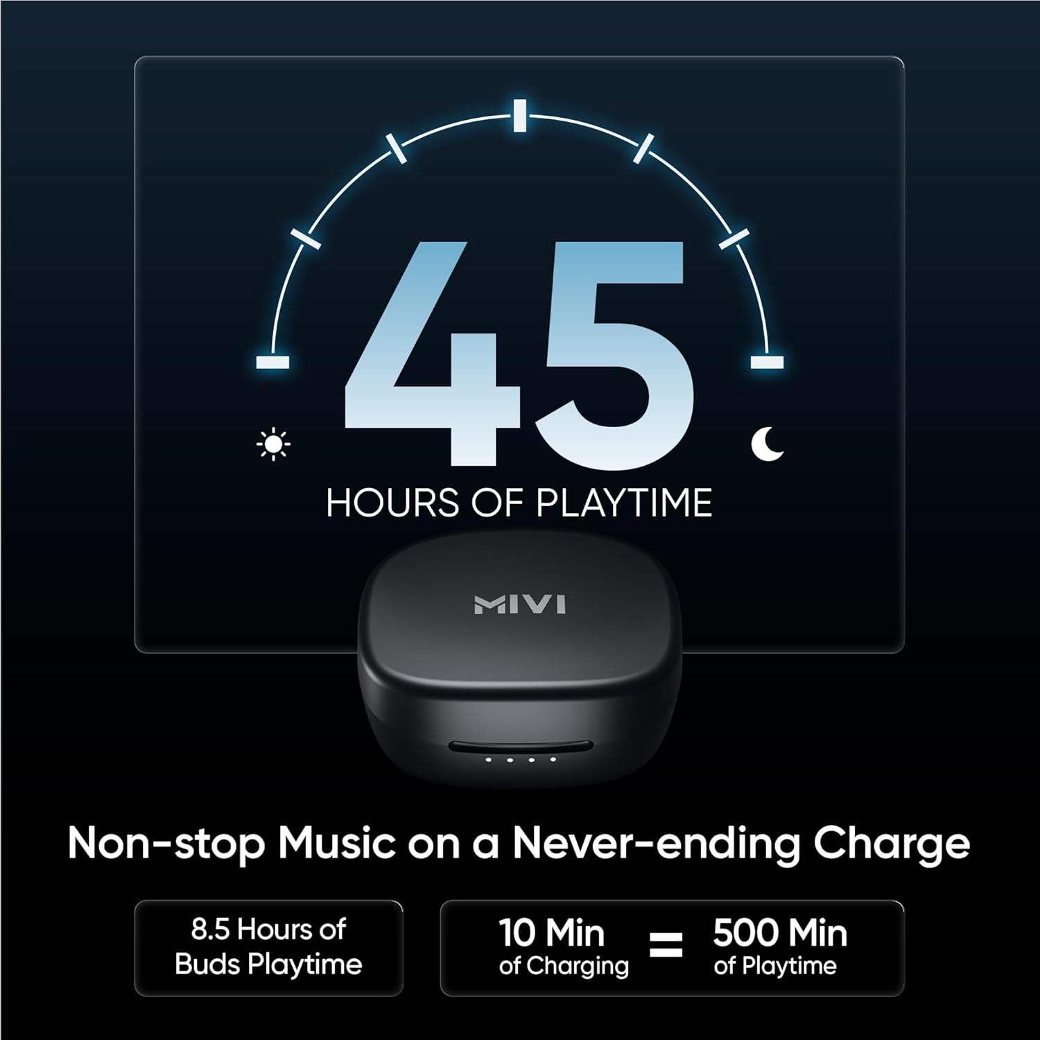 Powerful bass and Crisp Sound: The Electroplated 13mm drivers on MIVI DuoPods A450 TWS offer crisp highs, great mid and clear lows.