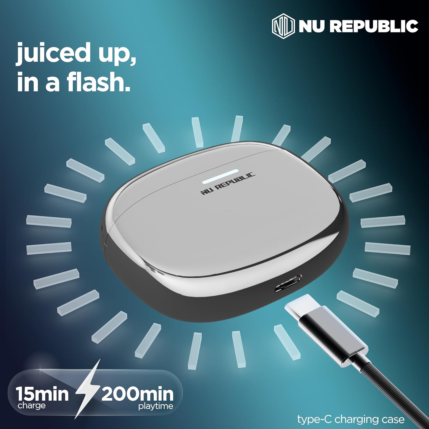 BATTERY LIFE: Impressive 52-hour total playtime with charging case, plus quick 15-minute charge provides 200 minutes of playback via Type-C port