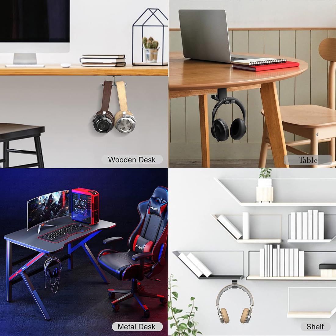 🎧The headset hanger is made from high-quality aluminum alloy, with the speciality of heavy-duty, rust-proof, scratch-resistant, and durable to hold two sets of headphones simultaneously. Smooth edge design and raised end keep headphones safe from scratching and dropping.