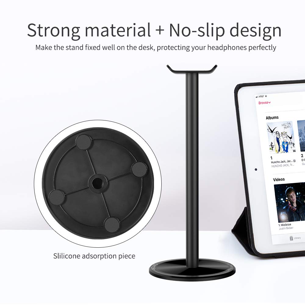 Made of plastic and TPU rubber to provide a safe and stable foundation for your headphones. The base of the product has three silicone pad to keep it from slipping and sliding