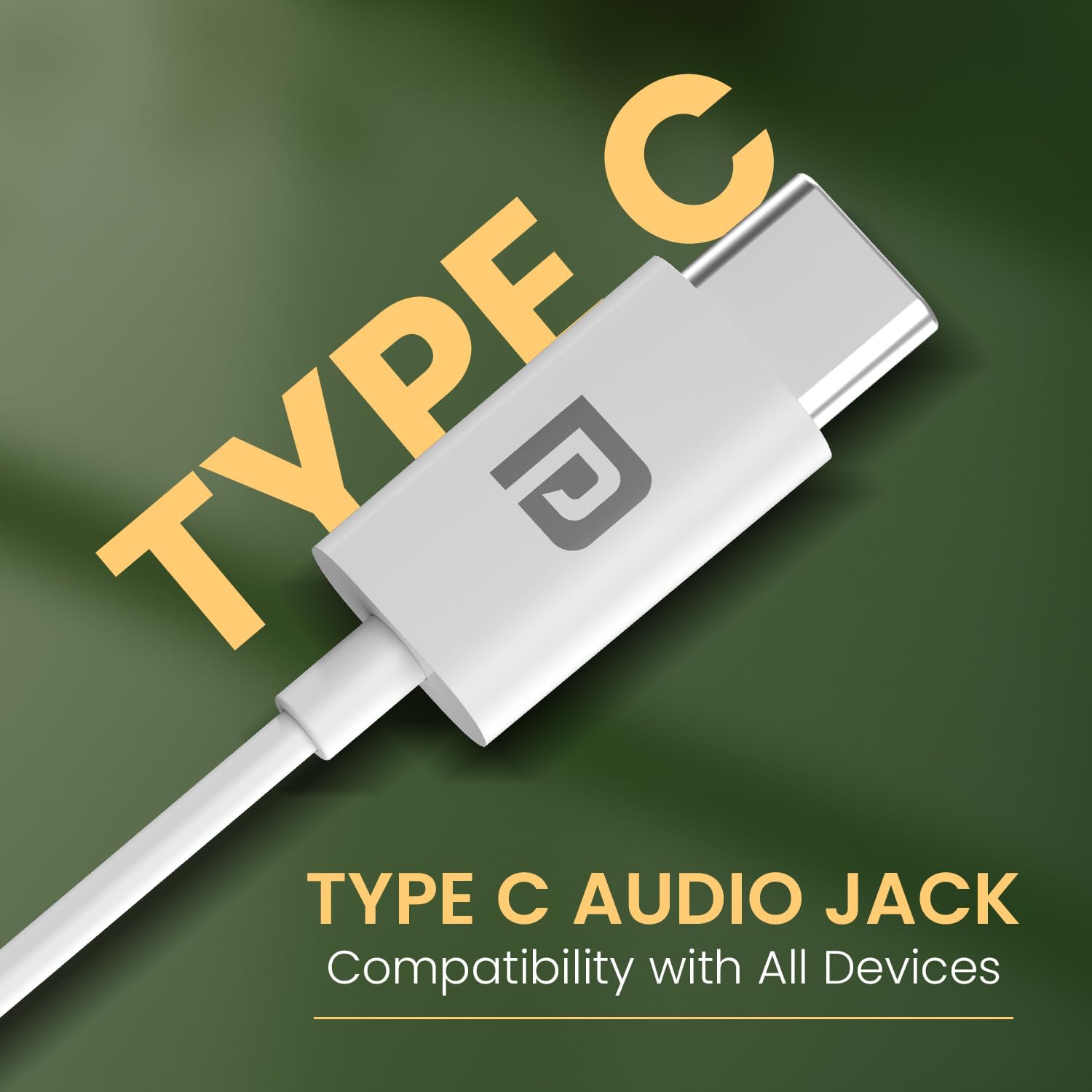 Portronics Conch Kappa C in Ear Type C Wired Earphones with In Line HD Mic, Powerful Audio, 14.2mm Dynamic Driver, Unique Earbuds Design,TPE Anti Tangle Wire,In line Controls,Wide Compatibility(White)
