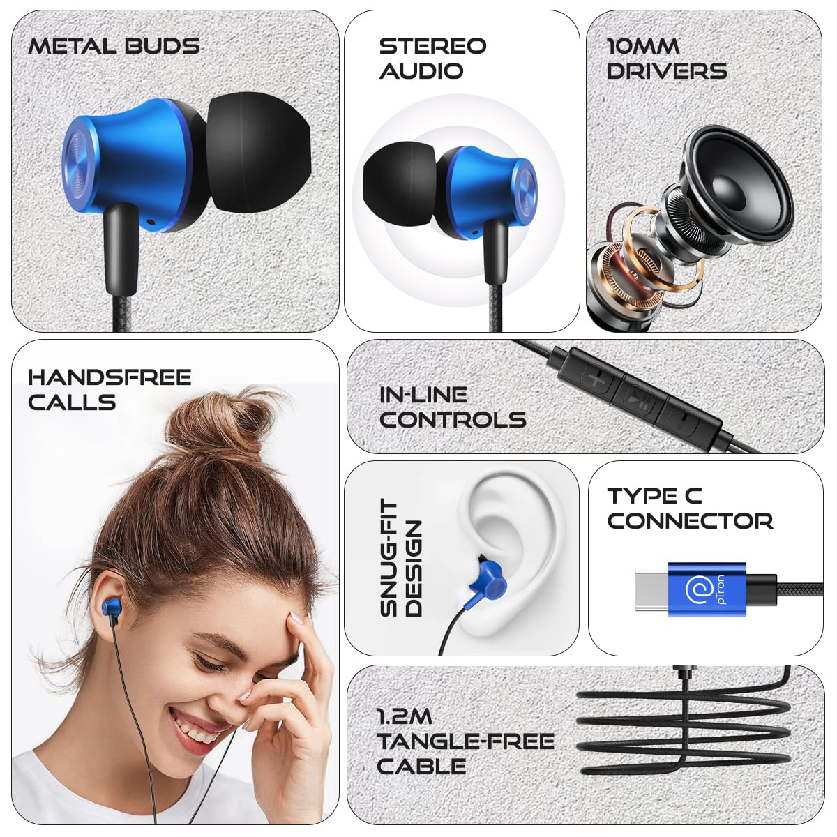 Ergonomic Design: These Type C wired earphones feature a metal alloy body & In-Ear snug-fit that provides better sound quality and is incredibly comfortable to wear & also blocks external noises