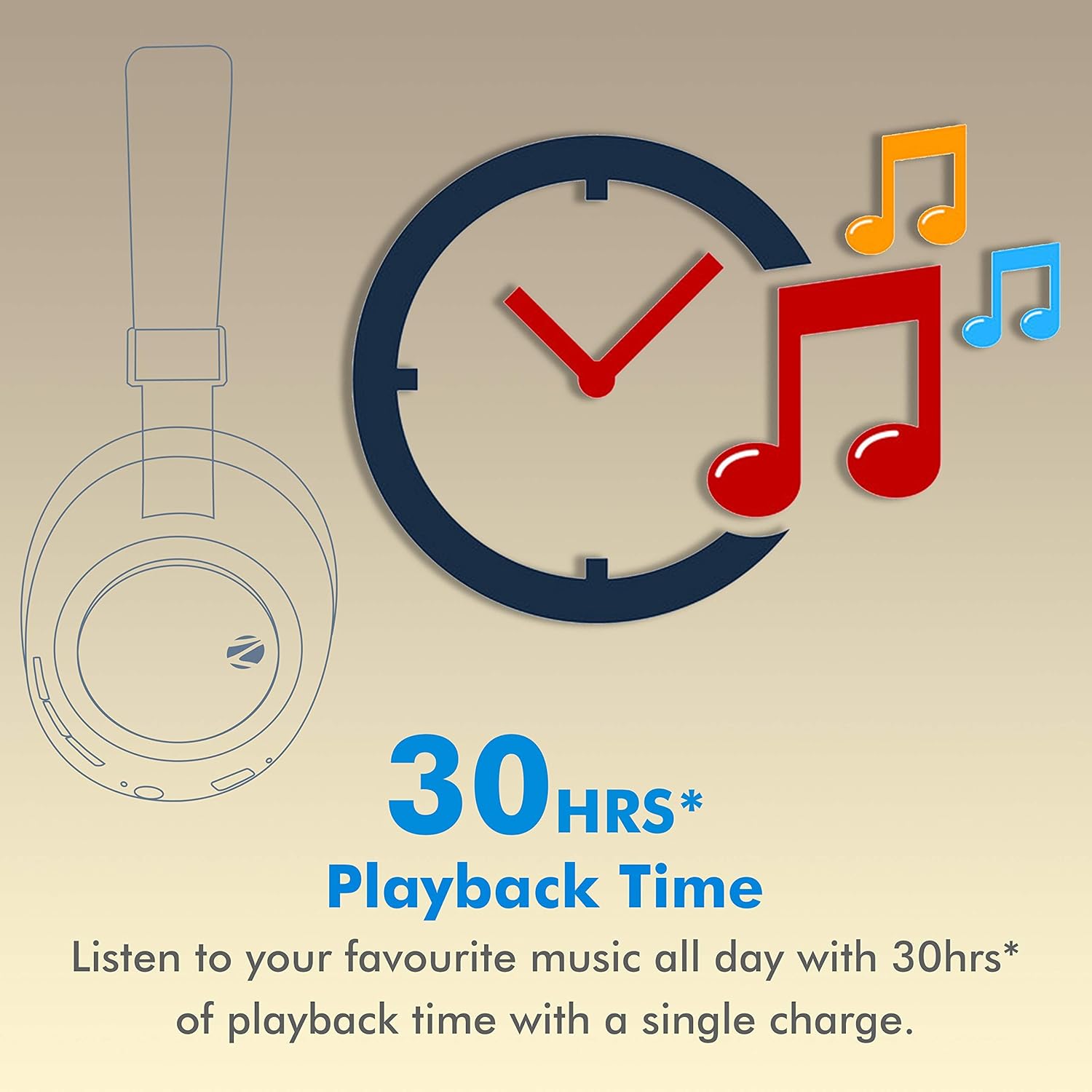 Charging time 2hrs Playback time 30 hrs* Talk time 30 hrs*