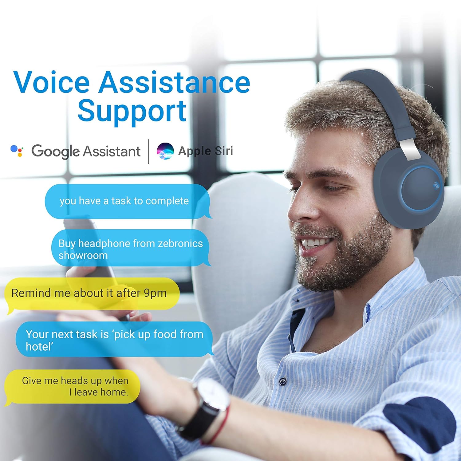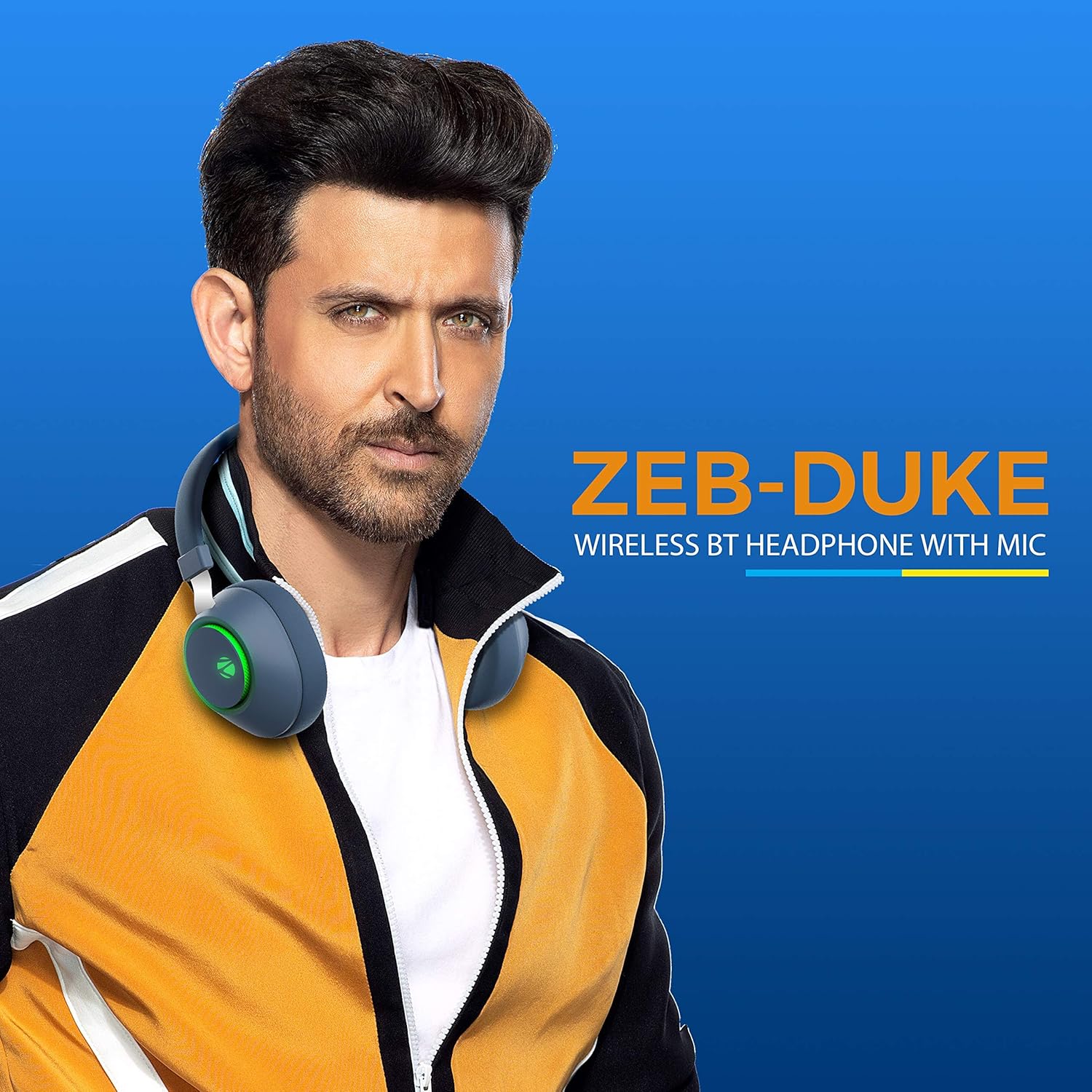 Zeb-Duke is a wireless headphone with a mic that is an up on style with comfortable ear cushions, adjustable headband, and RGB lights.