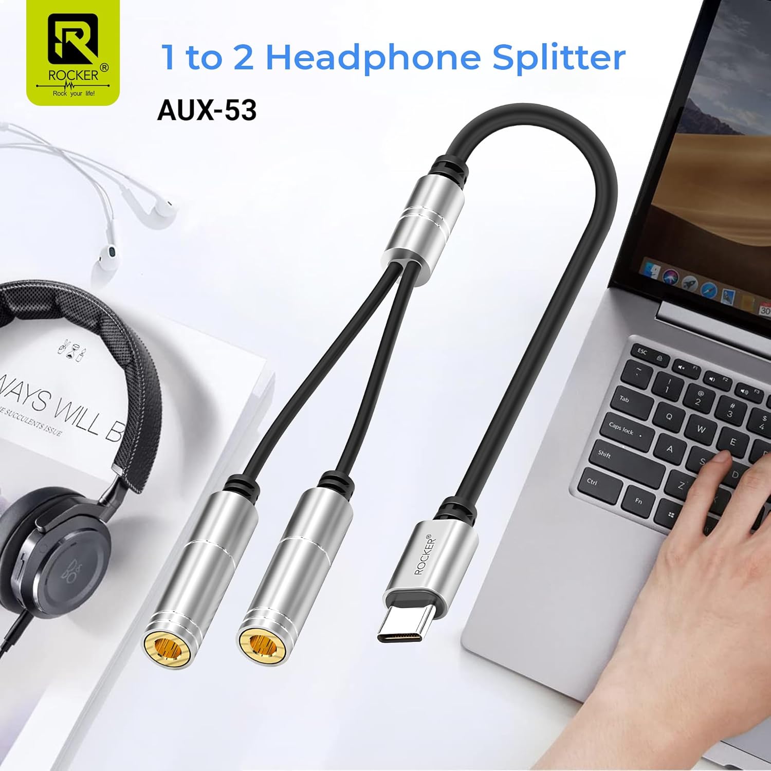 Experience seamless audio sharing with the Rocker R-AUX 53 Type-C Headphone Splitter. This versatile 2-in-1 adapter transforms a single USB-C port into dual 3.5mm audio outputs, perfect for connecting two headphones or earphones simultaneously. The premium gold-plated connectors and durable braided cable ensure reliable performance and crystal-clear sound transmission. Whether you’re watching movies with a friend, collaborating on projects, or gaming together, this adapter delivers high-fidelity audio without compromise. The splitter features universal compatibility with various Type-C devices including smartphones, tablets, laptops, PS5, Xbox, and other gaming consoles. Its reinforced design and professional-grade construction make it ideal for travel, entertainment, and daily use. Enjoy noise-free calls and superior sound quality while sharing your favorite content with others. The compact and portable design means you can carry it anywhere, making it an essential accessory for modern digital lifestyles.