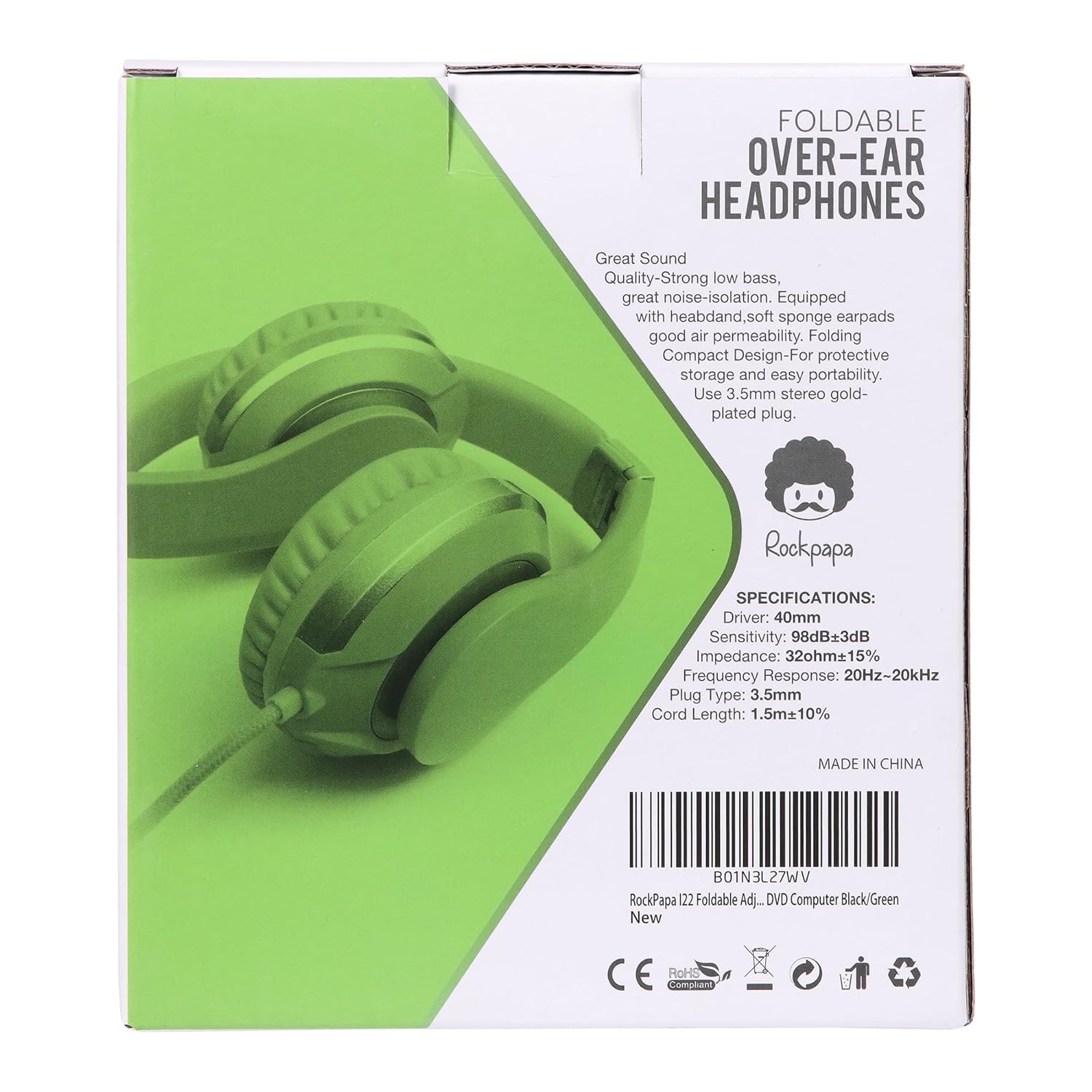 Comfort with Cloud Foam cushions 40mm Drivers Frequency: 20Hz-20kHz 1.5m long nylon cord with 3.5mm L Shape Jack In-Line Microphone function rockpapa Top-Class service