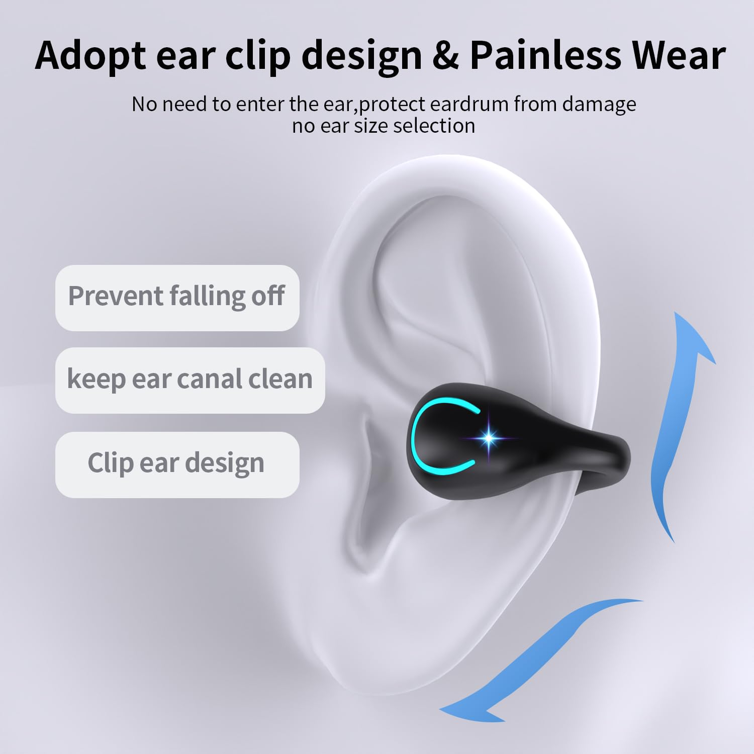 【True Open Bone Conduction Ear Headphone】Wireless headphones adopt a completely open design, the earbuds can be gently and firmly placed on the top of the ear. Open ear earbuds are typically lighter and more breathable than in-ear headphones, making them more comfortable to wear for extended periods of time.