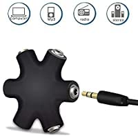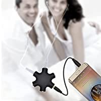 Headphone adapter splits line into 5 auxiliary (3.5mm) ports for easily sharing sound with up to 5 people