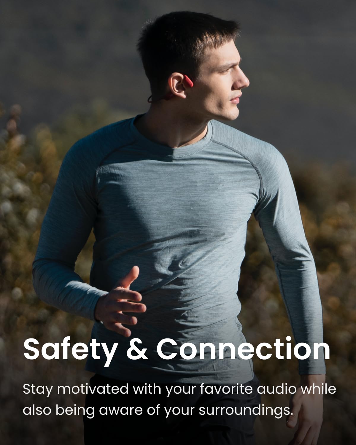 With open-ear design, packed with patented bone conduction technology, sports enthusiasts now have a pair of sports headphones that gives them a safer and more comfortable listening experience.