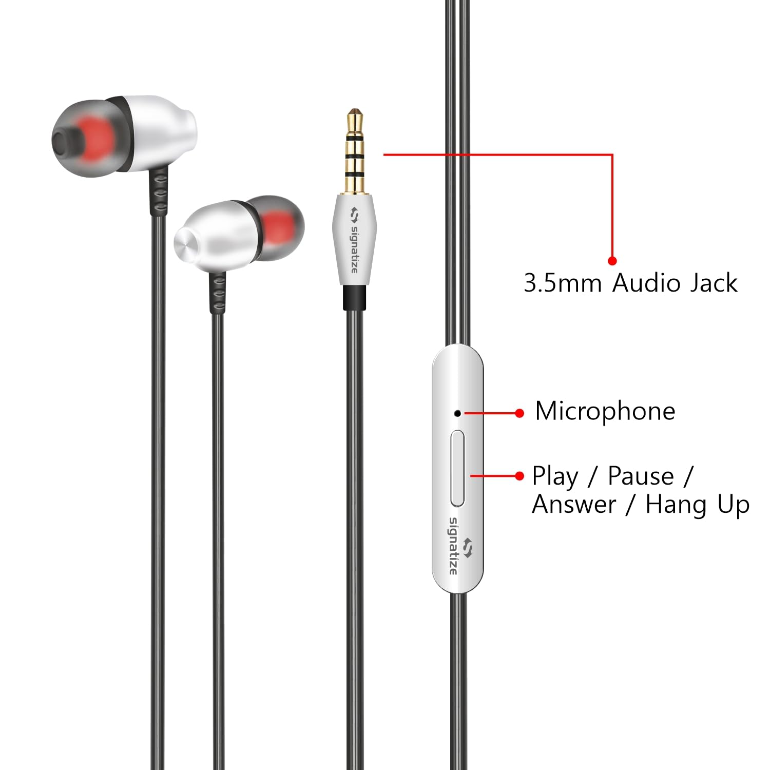 SIGNATIZE The wired ear buds fit your ears perfectly, feeling comfortable even wear for a long time. It is less likely to fall out even when you are running, hiking, jogging or other sport activities. Volume control, pause / play, Answer / Off, Built-in microphone. You can freely control music video playback or answer / end calls by pressing the centre button without taking out your phone. You could read the instructions on the box before using. Perfect stereo headphone allows you to experience super enhanced bass sound. Noise reduction design minimizes external sound interference. The potable earphone is made of high quality environmentally friendly material which is super durable long lasting life.TPE sturdy cable is free of tangle and keeps you connected to your device in smooth, simple style. Compatible with most 3.5mm enabled devices