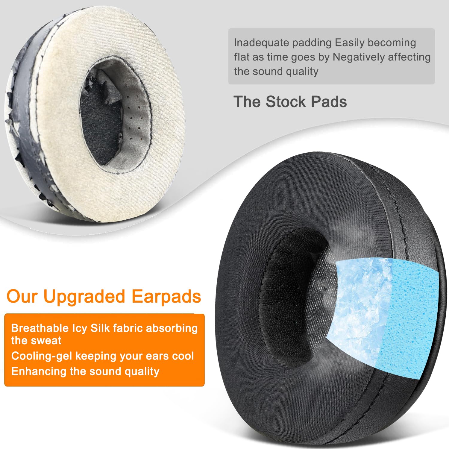 🎧Keep Your Ears Cool: The Soft Cooling-gel is added under the top layer fabric (breathable Ice Silk fabric) of the earpads, absorbing the sweat in the summer days and keeping your ears cool after a long time of use.