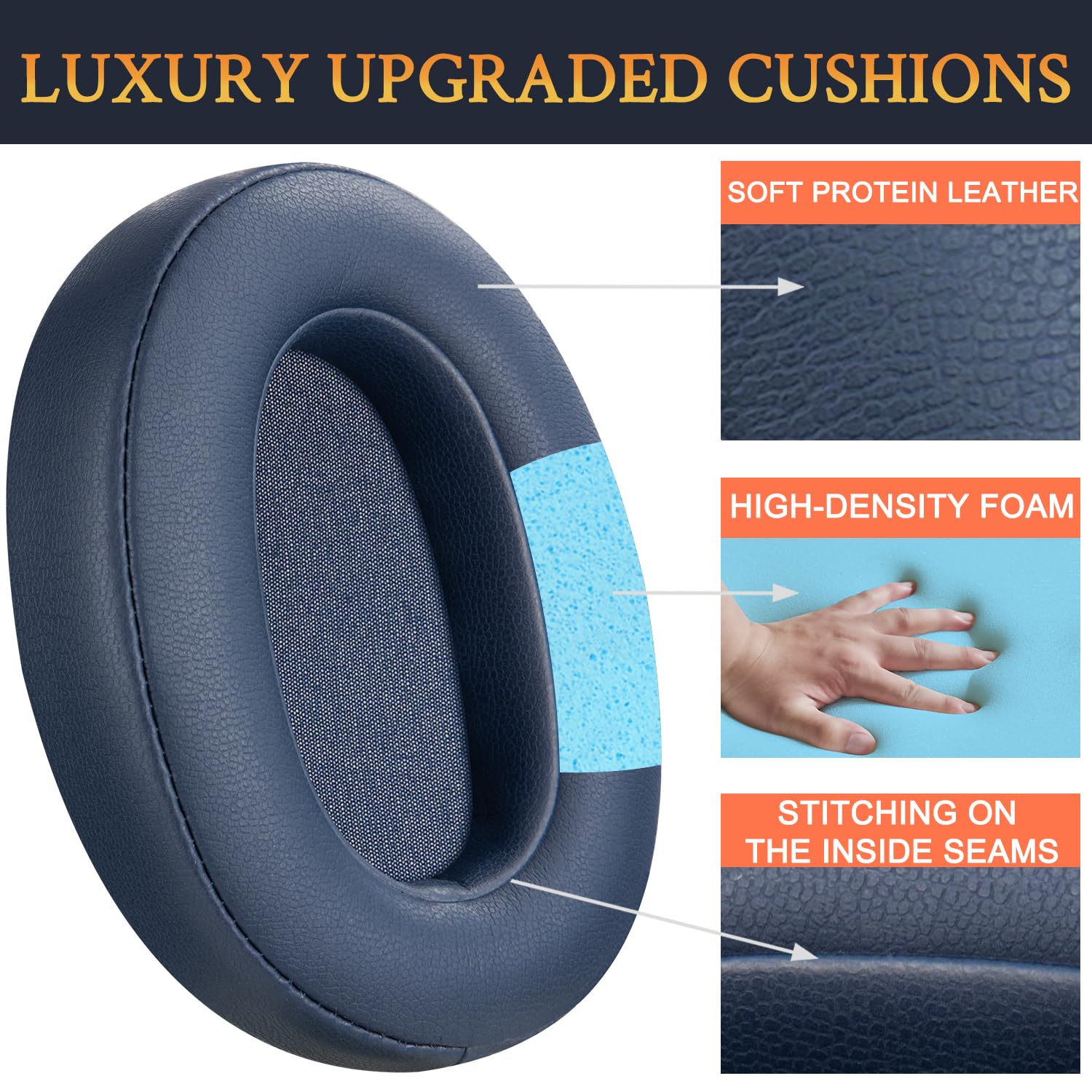 🎧RUGGED DURABILITY: We added stitching and mighty glue on the inside seams of each earpad to prevent them from splitting. Don’t be afraid to take off your old ear pads and put on our new one.