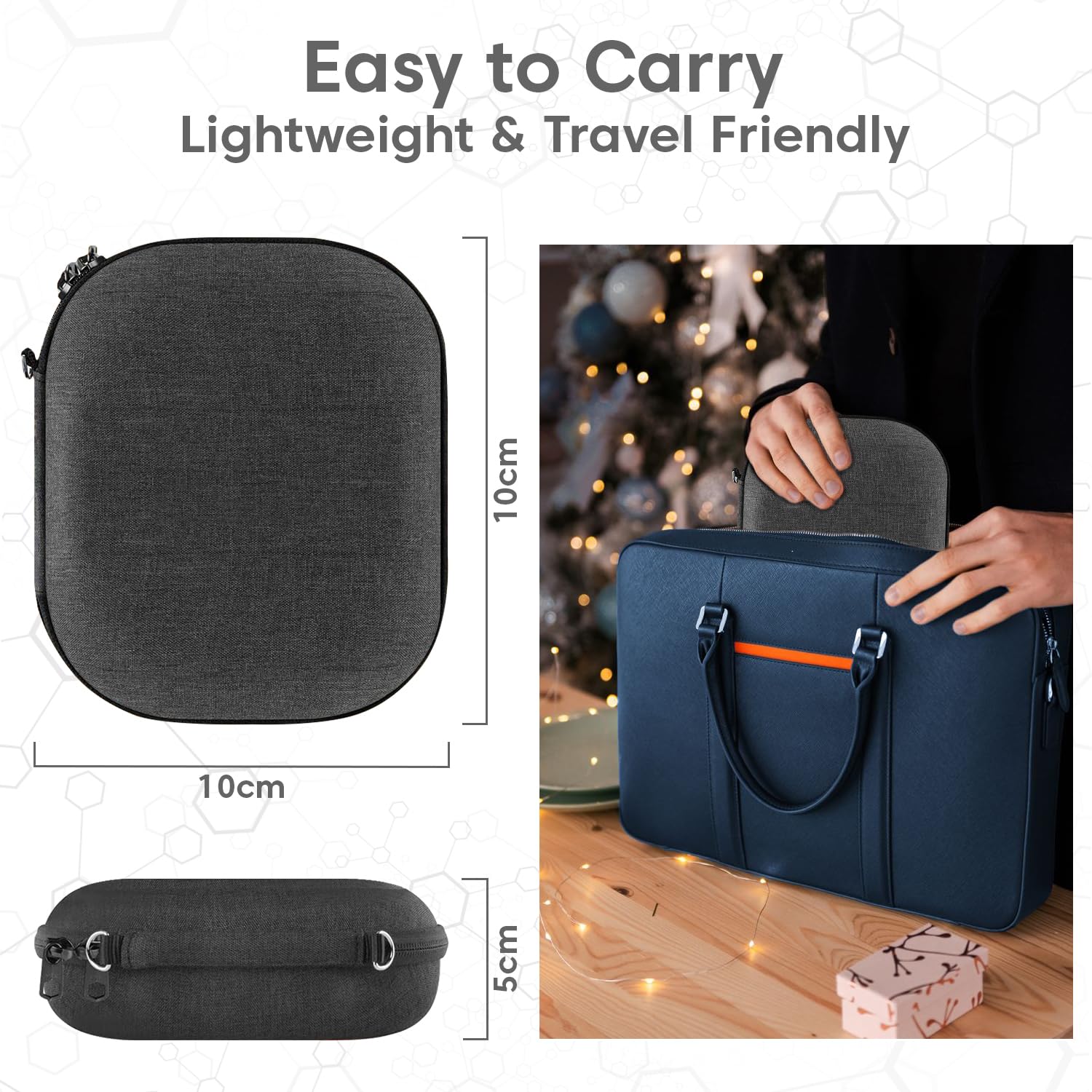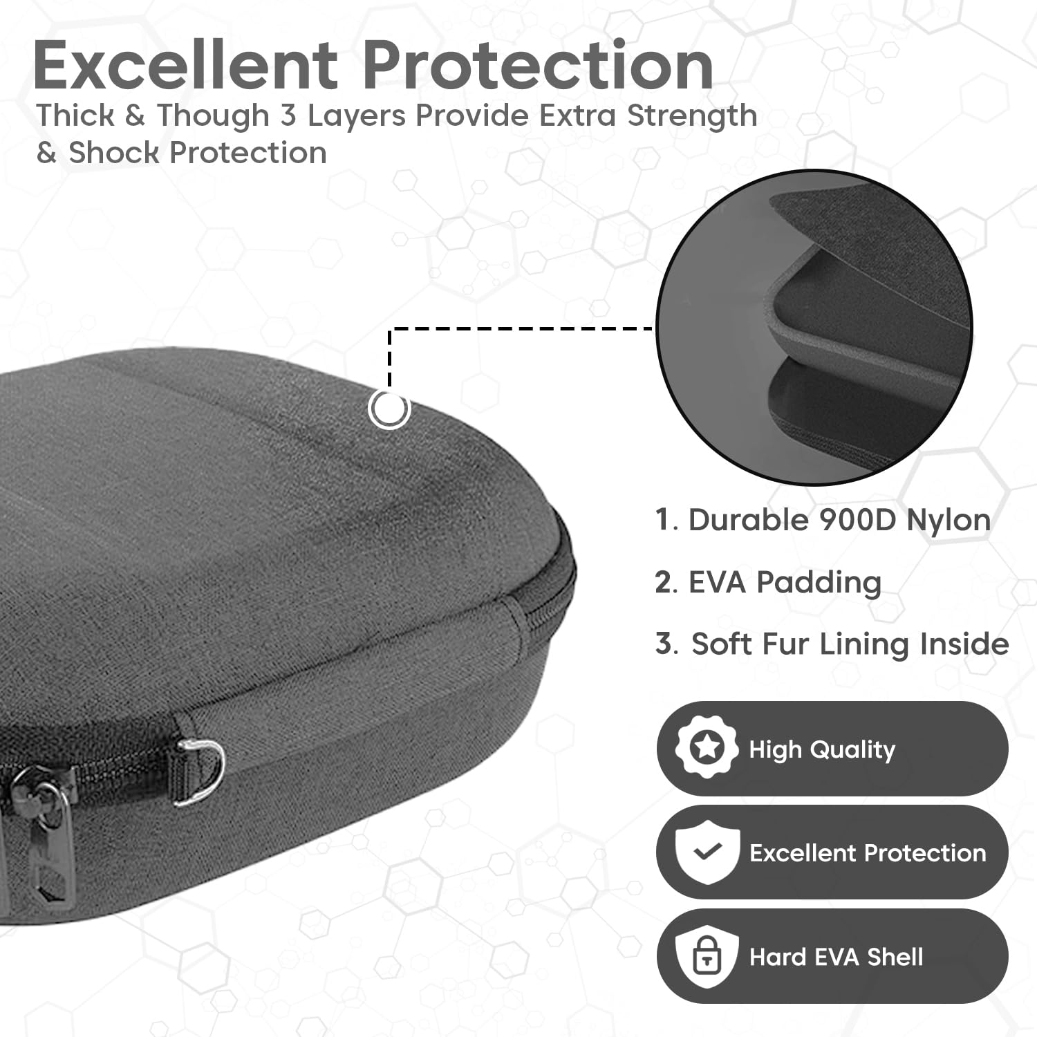 【Durable Protection】The headphone case features a reinforced hard EVA shell that absorbs shocks and protects against drops, scratches, and dust. Its lightweight, sturdy design is travel-friendly, while water-repellent properties safeguard against moisture. Enjoy peace of mind, knowing your headphones are secure and well-protected in any environment.