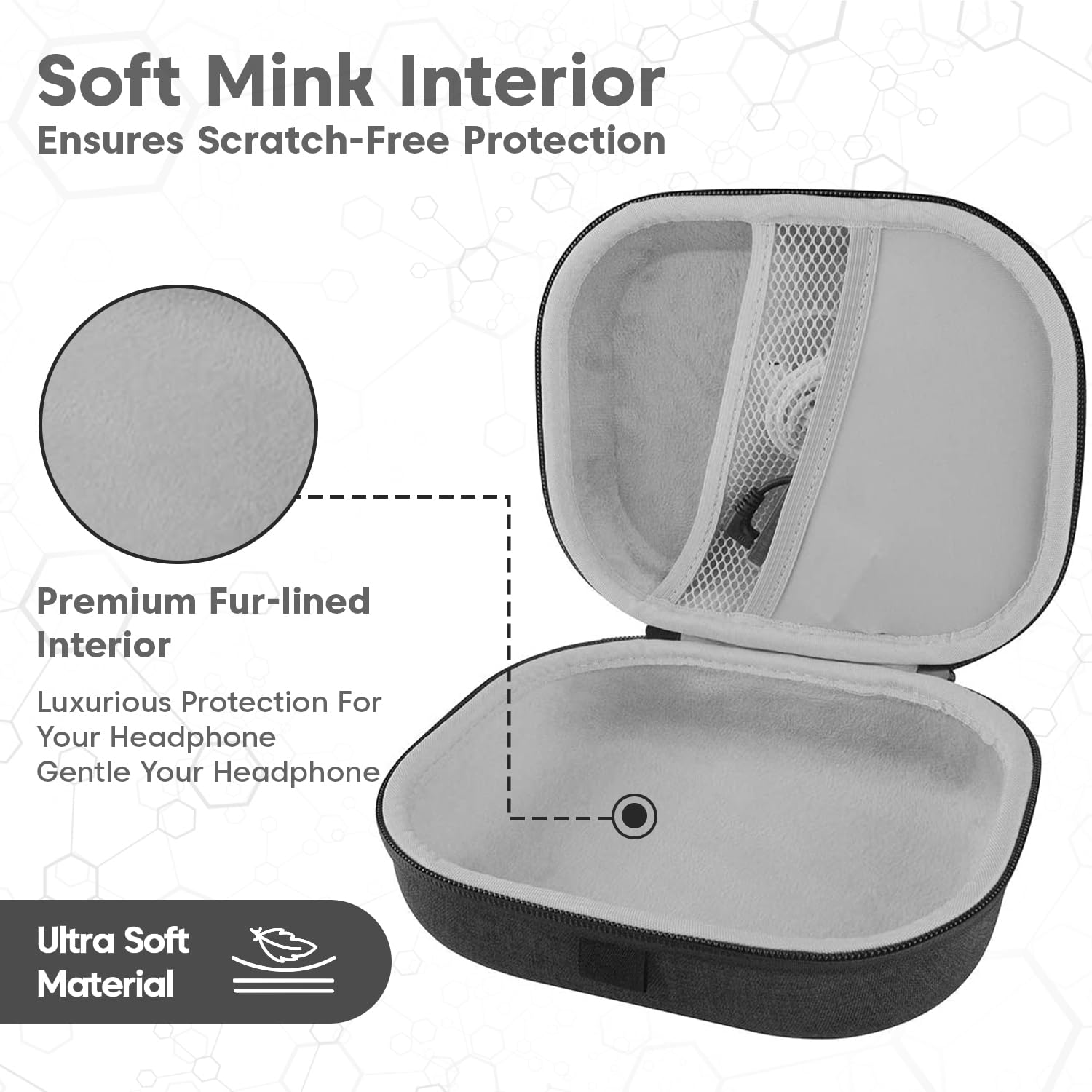 【Luxurious Interior】 The case features a smooth mink lining that not only offers a touch of elegance but also provides an extra layer of protection, keeping your headphones safe from scratches and ensuring they stay in pristine condition. Suitable for most over-ear headphone brands including Boat, Sony, JBL, Skullcandy, Marshall, Philips, Sennheiser, Logitech, Boult, Zebronics, and more.