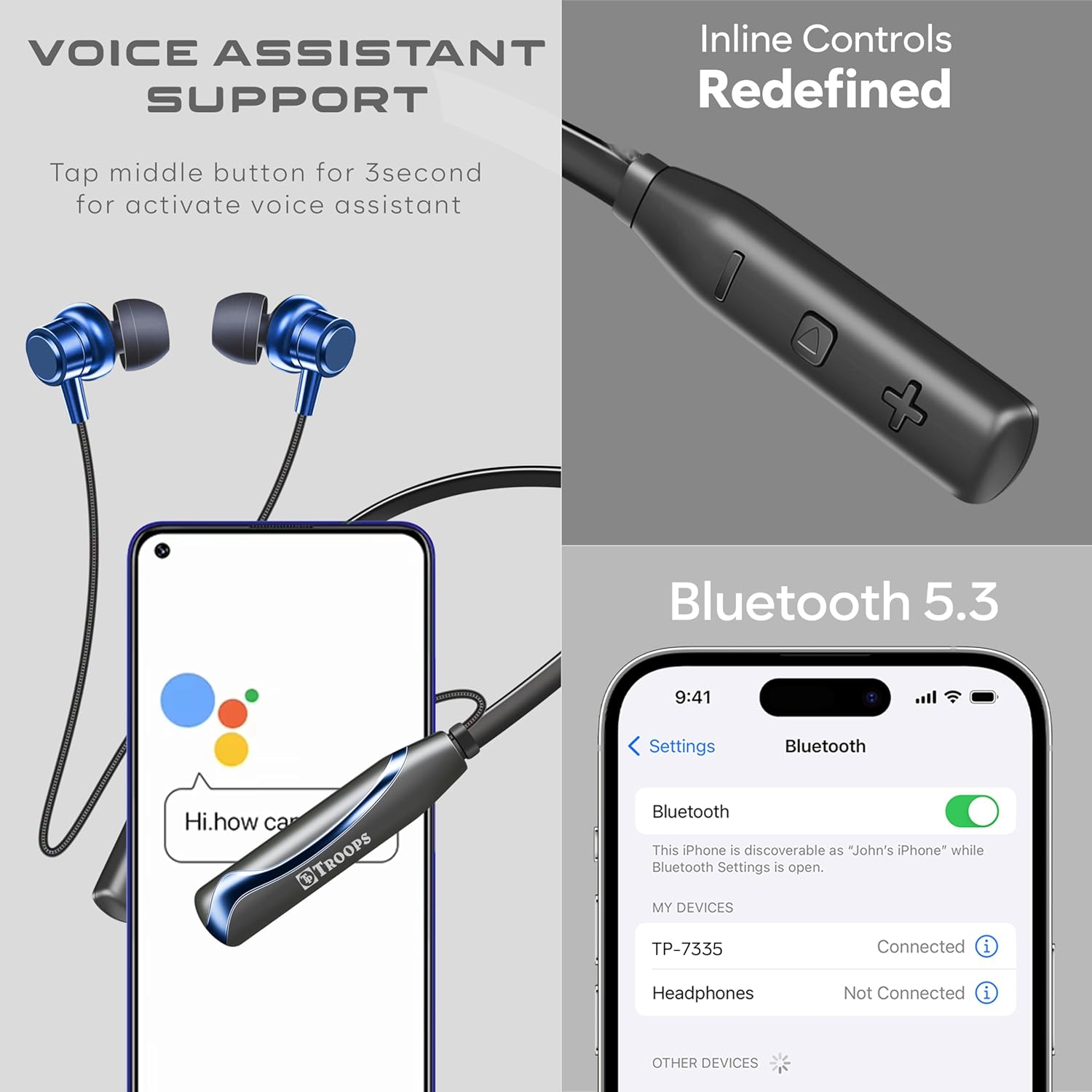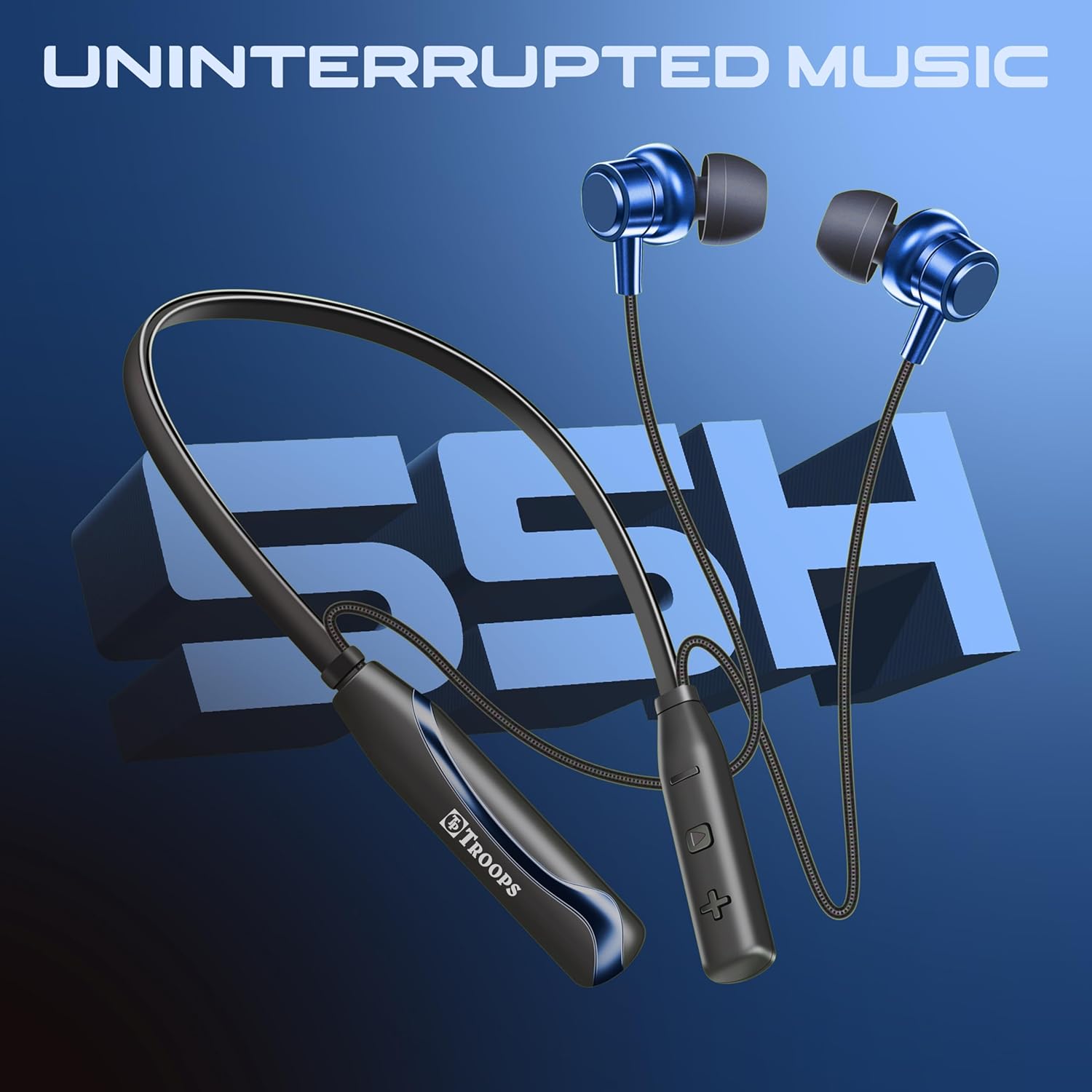 TP Troops – A Wireless Neckband Design In India! Tune in to music, take calls and comes with an in-built mic so you can walk and talk and make sure you’re ready for whatever the day brings Once you try this wireless neckband, rated wireless neckband earphones are sure to change the way you enjoy sounds in your life!. It is equipped with high-capability rechargeable lithium polymer battery with 1hours of charging time that will allow you to listen to your music up to 55 hours straight.