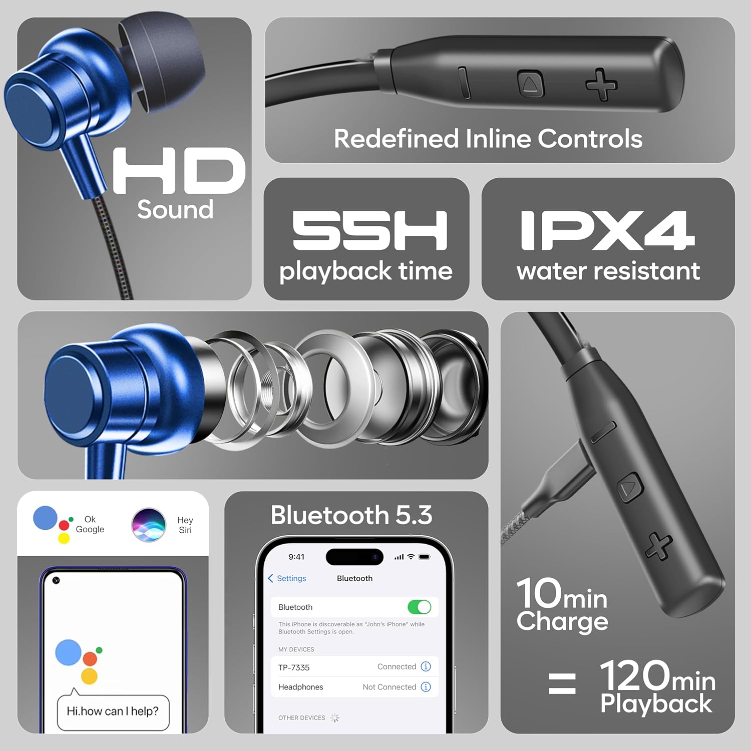 ✅ 55HRS Playtime with Deep Bass & Rich Sound: Experience powerful, immersive sound with dynamic 10mm drivers. This wireless earphones delivers deep bass and clear audio, providing up to 55 hours of nonstop music give best experience.