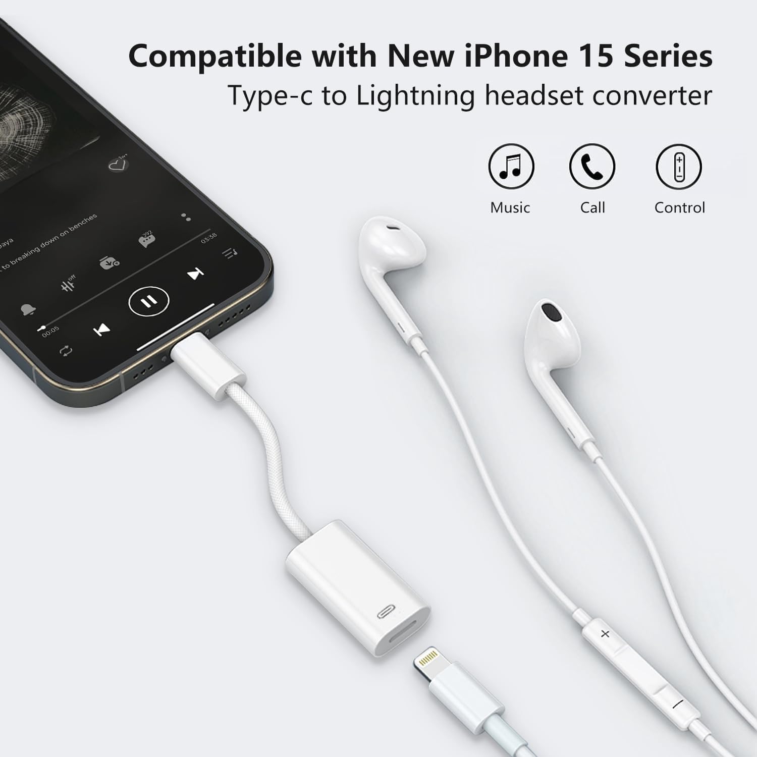 Audio and Charge: This usb c to lightning headphone jack adapter not only support audio, but also support charge and data transmission. It also supports phone call and volume control