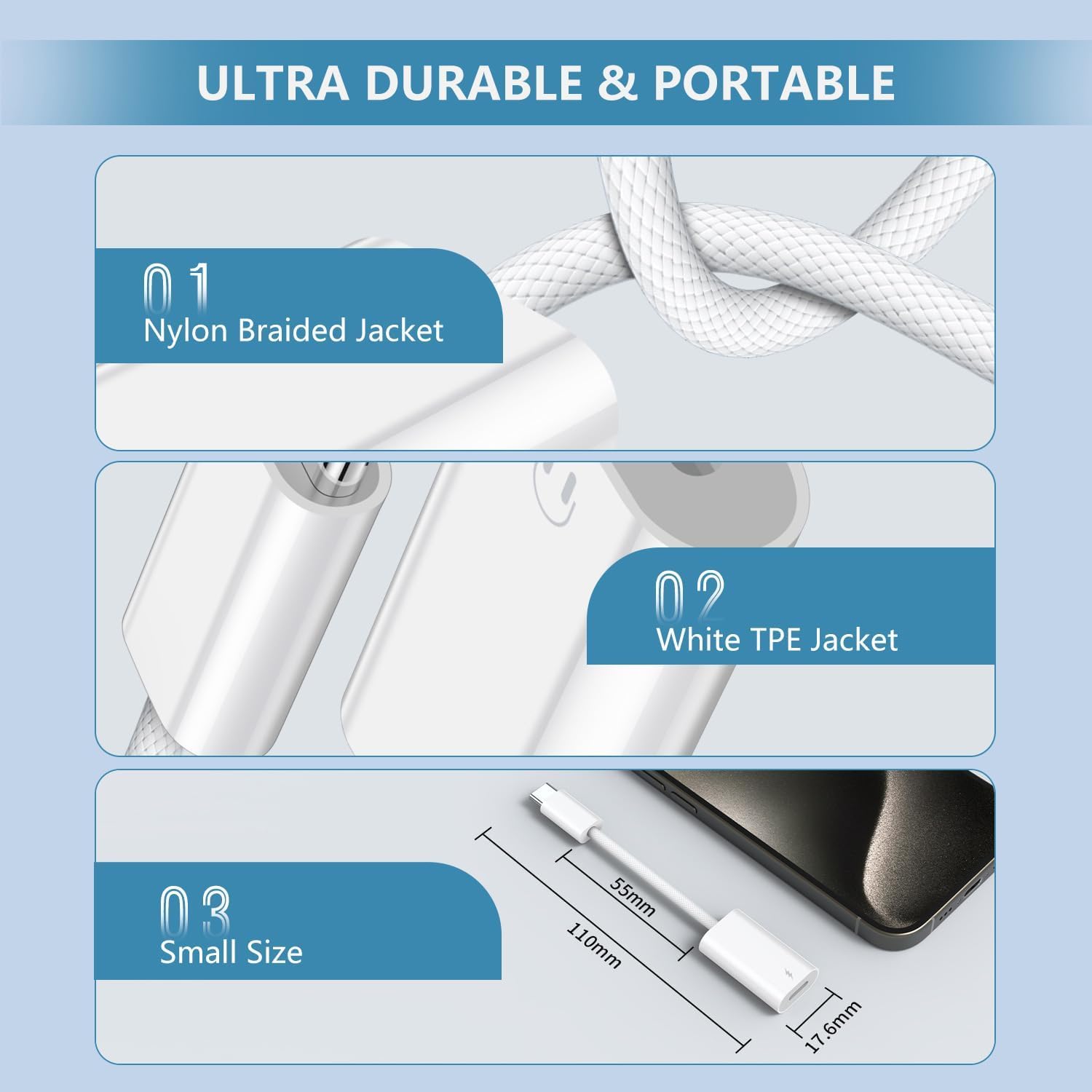 Small and Portable: Ultra thin size, ultra compact design, stretch resistant, long-lasting; flexible TPE coating got through bend bears test, which is durable for daily usage, also the mini size is easy to carry for going out