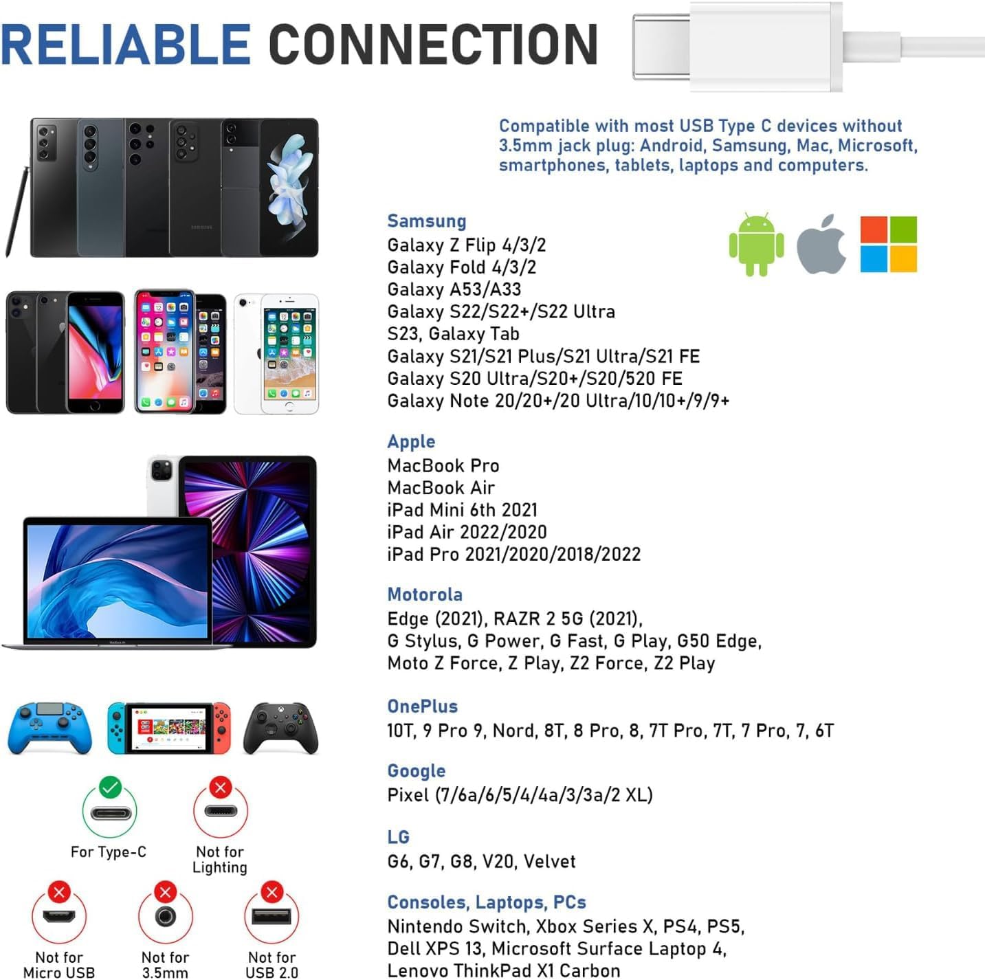 [Quality Material Usb C Earphone] : Metal-Plated Connectors Greatly Reduce The Phenomenon Of Poor Contact, Stretch Resistant, Long-Lasting; 1 Meters Length, Built-In Powerful Dac Chip To Maintain The High Resolution Acoustics Of Your Devices, No Buzzing, Popping, Or Any Bad Audio Issues, Just Plug And Play To Enjoy Your Favorite Music
