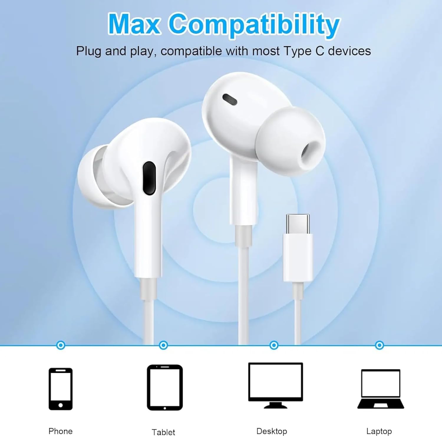 Material: The quality materials used in c type earphones minimize sound transfer loss. provides excellent sound quality with well-balanced audio that allow you to experience real live music with powerful bass, soaring highs, and clear mids.