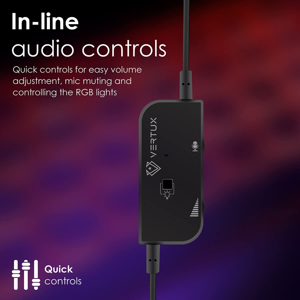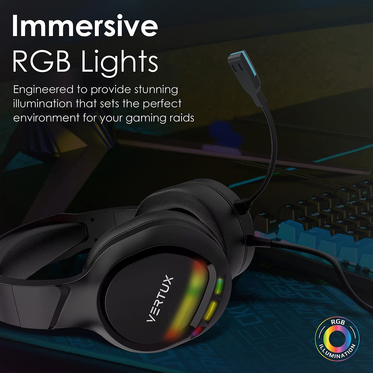 Vertux Tokyo Gaming Headset | Over-Ear Noise-Isolating | Omni-Directional Mic RGB Light | 50mm Distortion-Free Drivers | Detachable Headset for PS4, Laptop, PS5, PC, iMac- Black