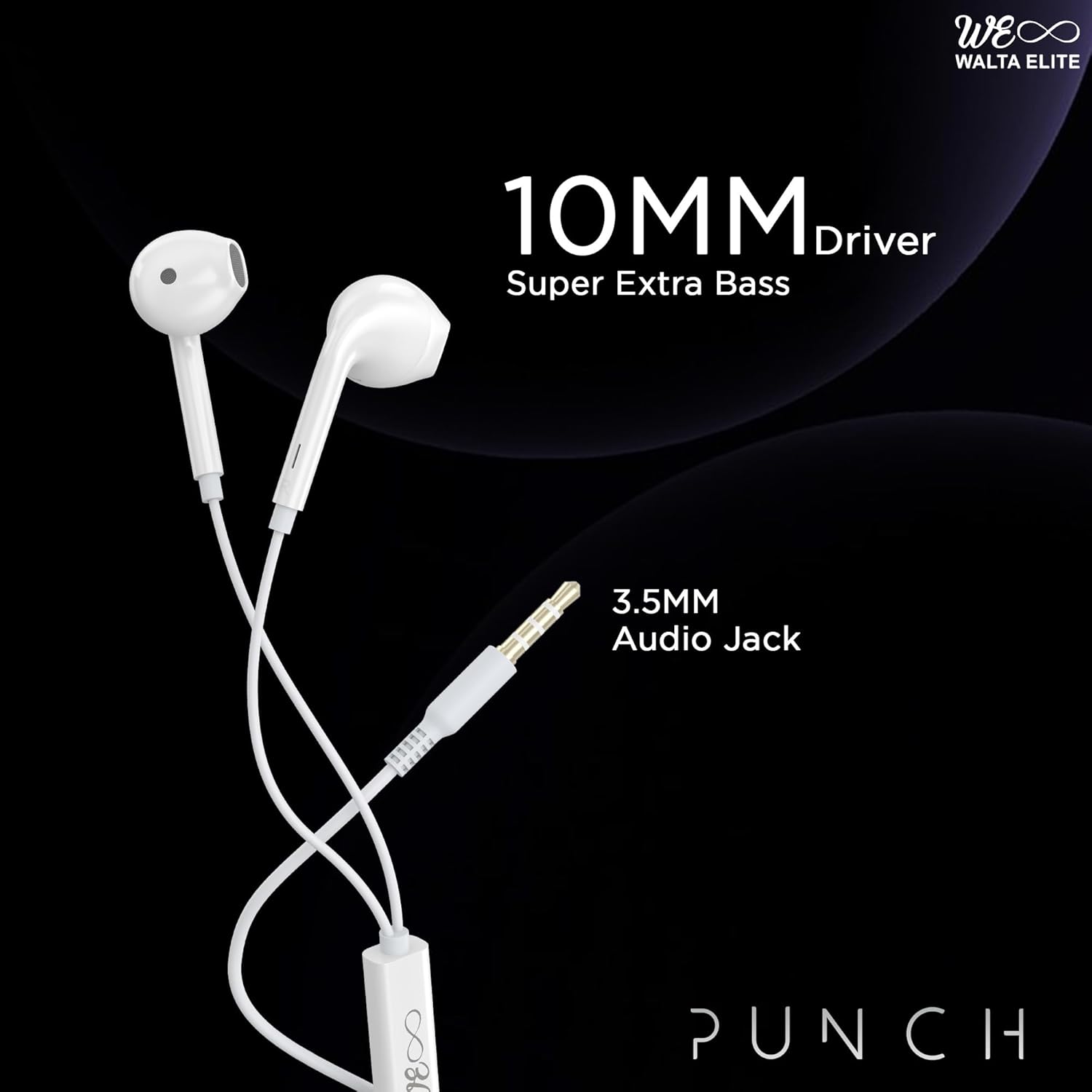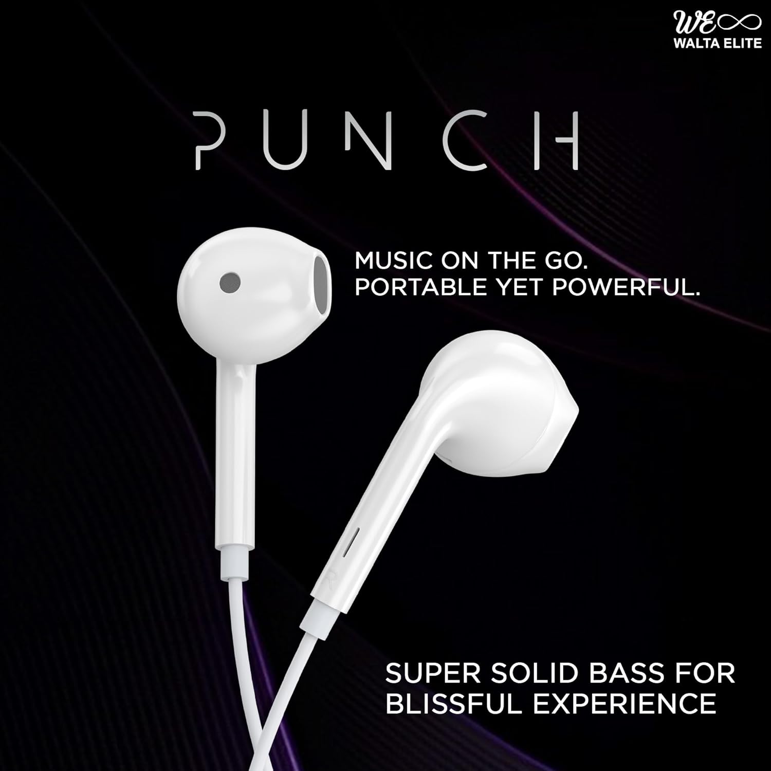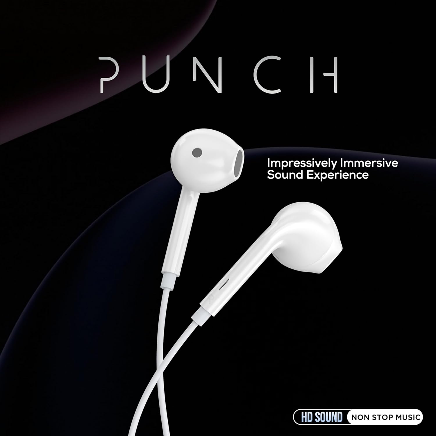 Get the detailed trebles, thumping bass and warm tone vocals with the Punch 3.5mm stereo earphones. The 14mm drivers are designed to deliver audio suitable for all users.;Compatible with smartphones, tablets, Laptops etc.,