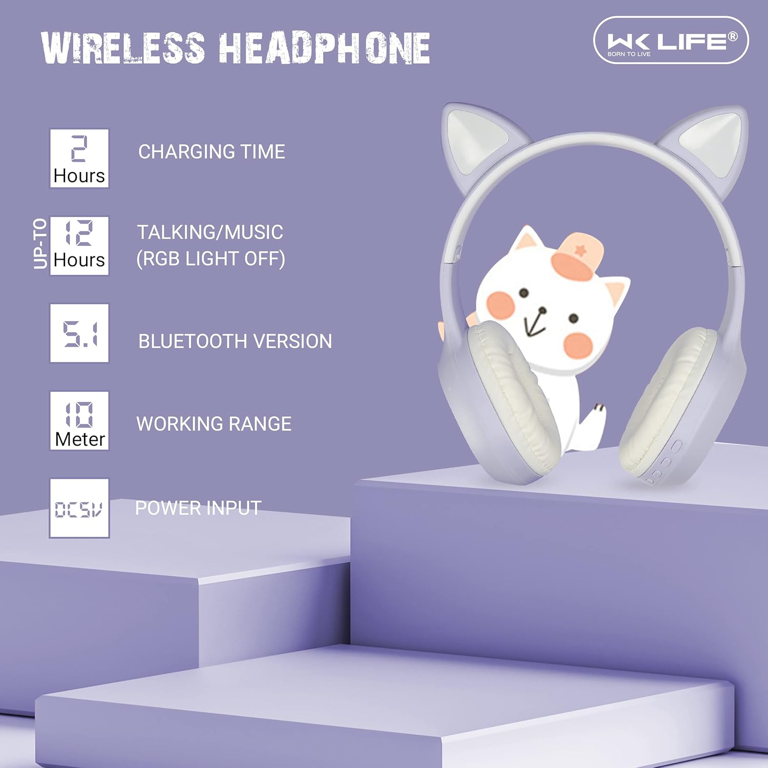 【Kids Headphones Wireless Passive Noise Deduction Children Headphones 】WK Life kids Bluetooth headphones have a passive noise deduction function to eliminate background noise so that the kids would be able to hear clearly and get less distracted by the outside noise. Perfect for kids when having online classes or watching videos.