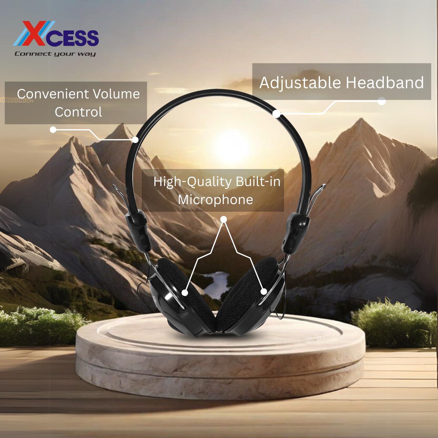 The XCESS Headphone with Volume Control & Mic is a versatile and high-quality audio solution designed for gaming, work, music, online meetings, and hands-free communication. Featuring an ergonomic and comfortable design, these headphones are built for extended use with soft earmuffs that provide a snug fit while reducing external noise, ensuring long-wear comfort. The adjustable headband allows for a customized fit, catering to different head sizes for a secure and relaxed experience. Equipped with a high-quality microphone, it ensures clear and precise voice transmission, making it perfect for calls, video conferences, and gaming chats. The 3.5mm single audio jack offers universal compatibility with laptops, computers, mobile phones, gaming consoles, and tablets, allowing for seamless connectivity without the need for extra adapters. The built-in volume control allows users to conveniently adjust audio levels without reaching for their device, enhancing ease of use. The high-fidelity sound output ensures balanced audio with deep bass and crisp highs, making it suitable for both communication and entertainment purposes. The hands-free functionality lets users take calls and chat effortlessly, improving productivity and multitasking. Its durable yet lightweight build makes it easy to wear for long hours without discomfort. Whether you’re a professional, student, gamer, or music lover, the XCESS Headphone with Volume Control & Mic offers excellent audio clarity, convenience, and device compatibility, making it a perfect choice for daily use in any environment.