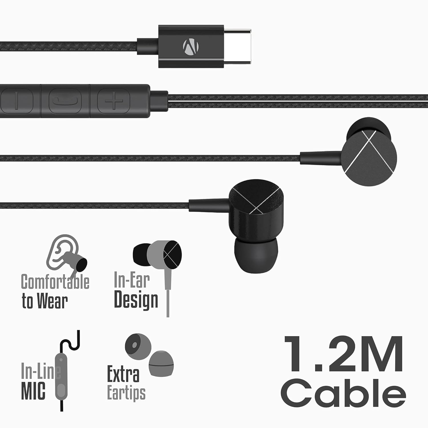 Type C Earphone with Mic;1.2 Metre Braided Cable