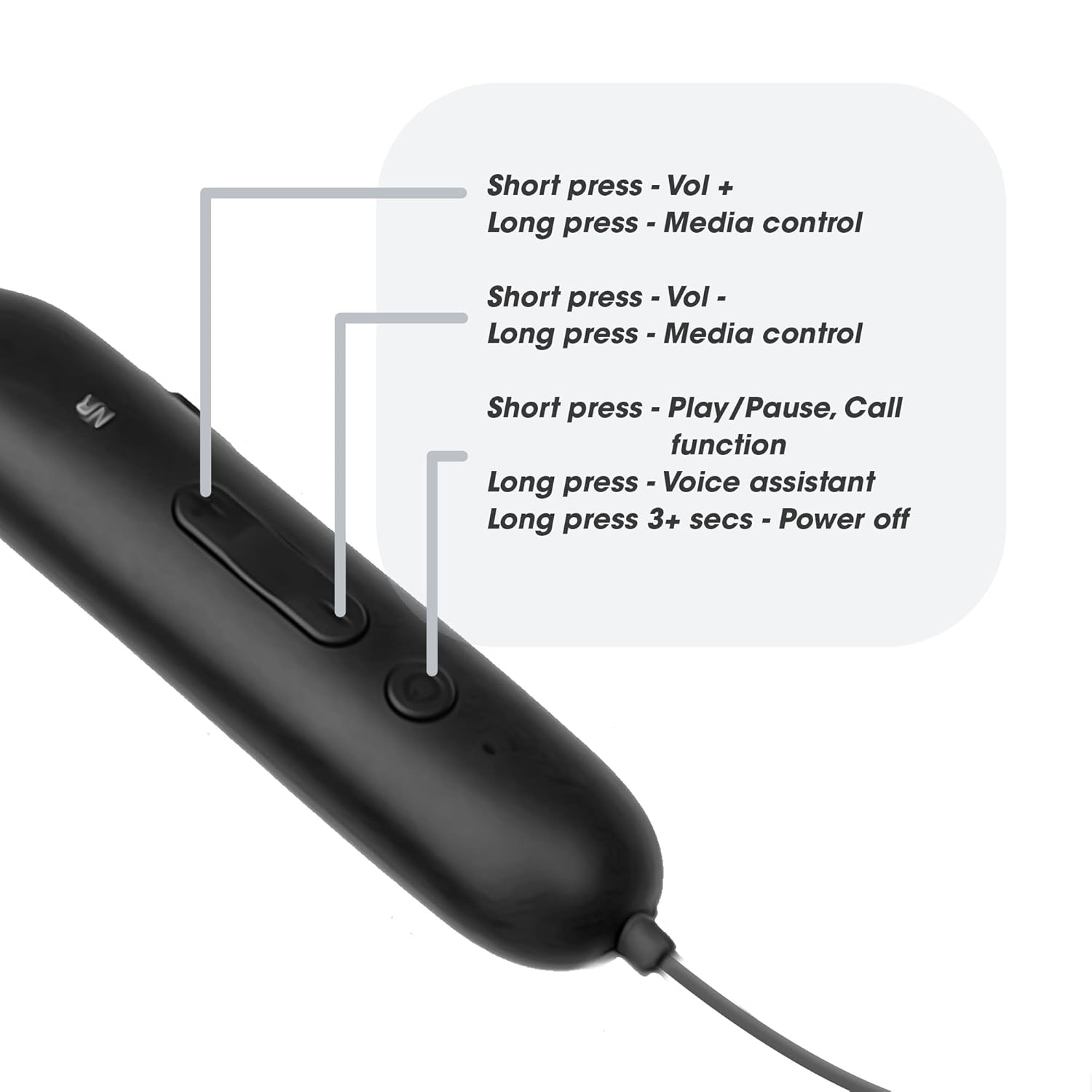 ZEB-Yoga 2 is a wireless neckband earphone that comes in an ergonomic & lightweight design. Listen to your music for long hours as the wireless earphone has 21 hours* of playback time and comes with controls for media, volume, and voice assistant. It has a metallic earpiece to give a tangle-free experience.