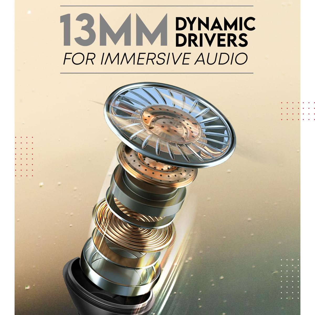 Dynamic 13mm drivers for immersive stereo sound experience | 18 hours music playtime on a single full charge
