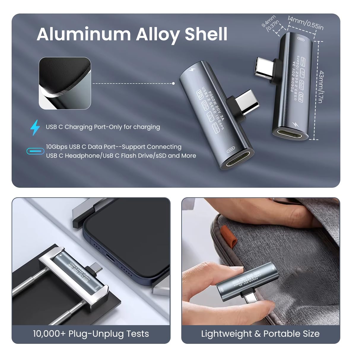 USB C HEADPHONE & USB C CHARGING ADAPTER: This USB C to Dual USB C Headphone Jack adapter supports both USB Type C headphone and 60W 20V/3A USB C Fast Charging connected to USB C device, allowing you listen audio from USB C Phone/Tablet while get the device charged simultaneously