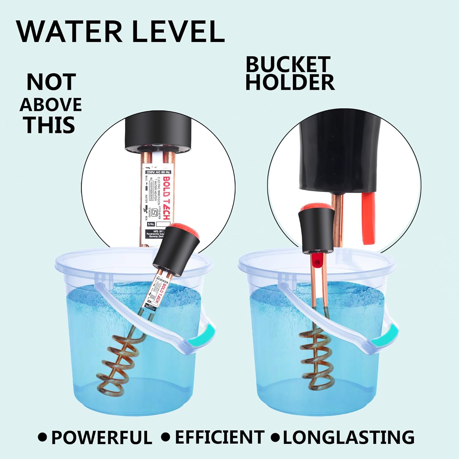Shock proof – Completely safe with advanced technology, Copper Element with Nickel plating for efficient performance and long life, Convenient Bucket handle for easy grip and easy usage , Consumer can use this product conveniently without the fear of getting shock which can be the case with ordinary immersion rod, Super-fast heating – Immersion rod with Super-fast heating, Copper tube element with long lasting nickel plating for longer element life , Water Proof – Waterproof design makes the product performance reliable and consumer can conveniently reuse the product even after the product has been dipped in water during usage by mistake , Shock proof plastic handle, Light-weight for portability; heating element with longer life; powerful heating element for superior performance; warranty: 1 year on product , 100% make in India, Quality check as per International Standard, Overheating Protection, Product made as per follows all norms by department High Durability, High efficiency, High Performance,