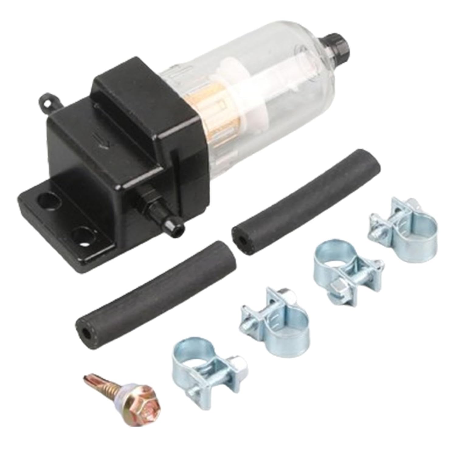 1 Fuel Strainer Water Separator, 4 Clamps, 2 Hoses, 1 Screw