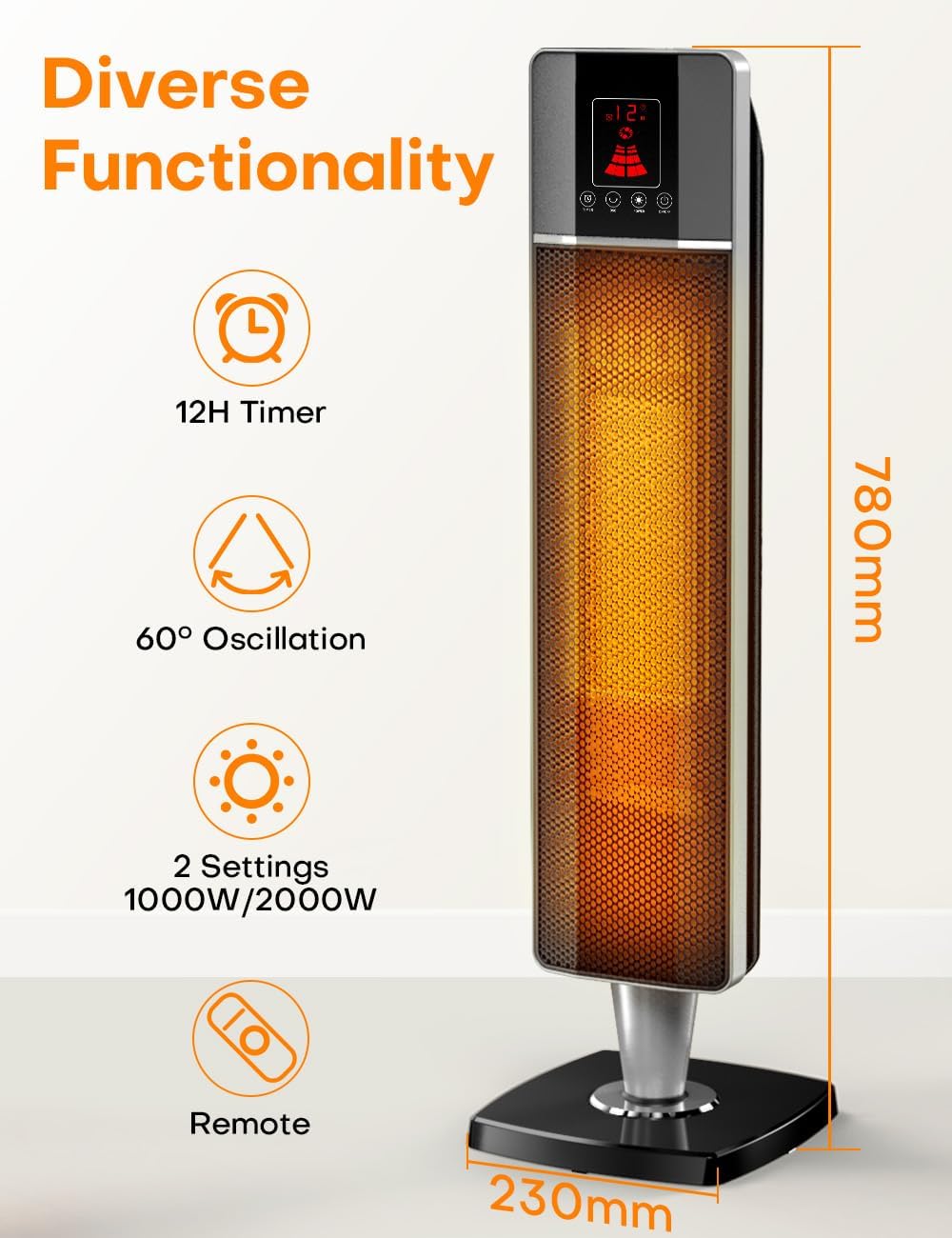 COMFYHOME 78CM 2000W Room Heater for Bedroom w/Remote, 12H Timer, 2 Heat Modes & Fan Mode, Advanced Overheat Protection, ISI Approved, Low Consumption, Room Heaters Home for Winter | 1 Year Warranty