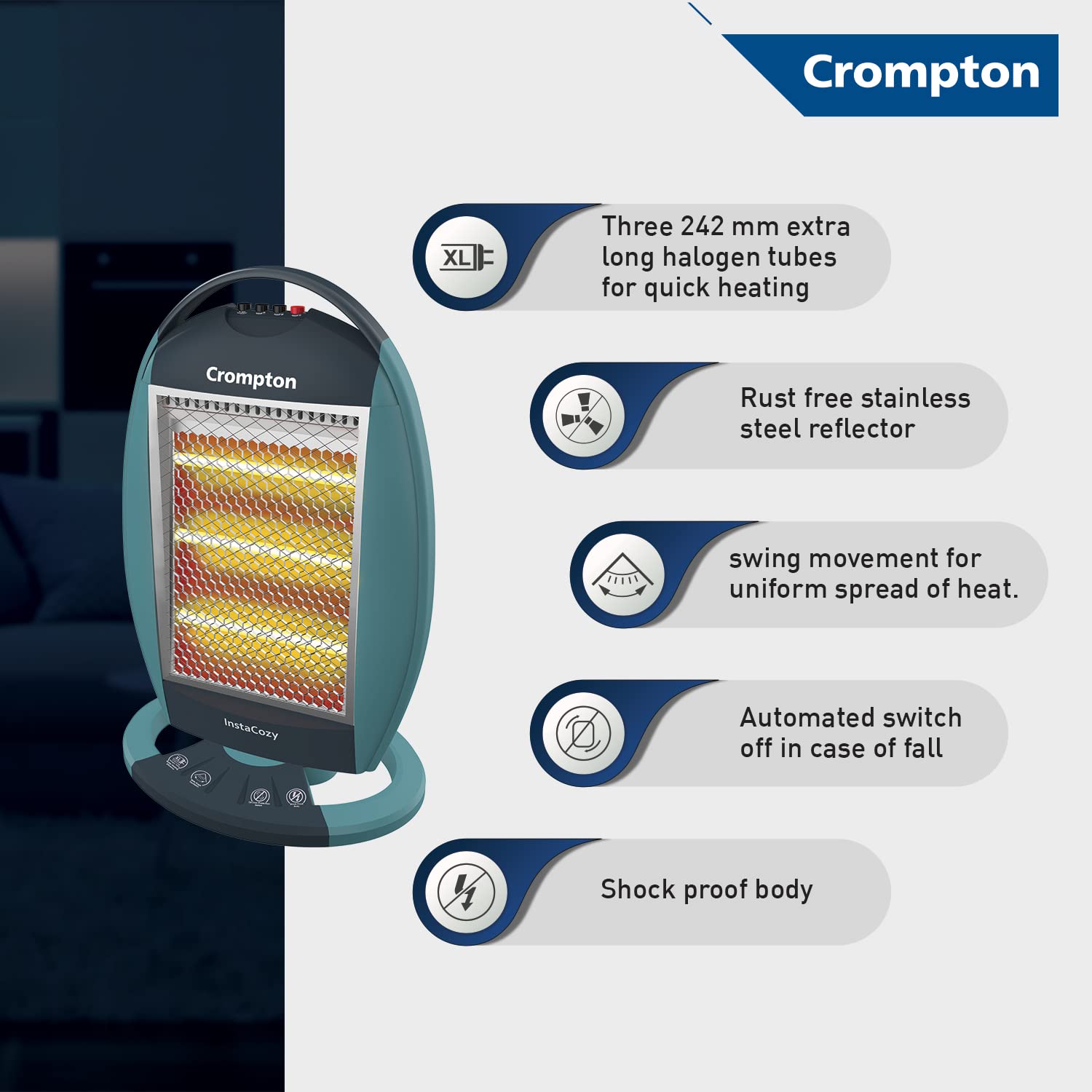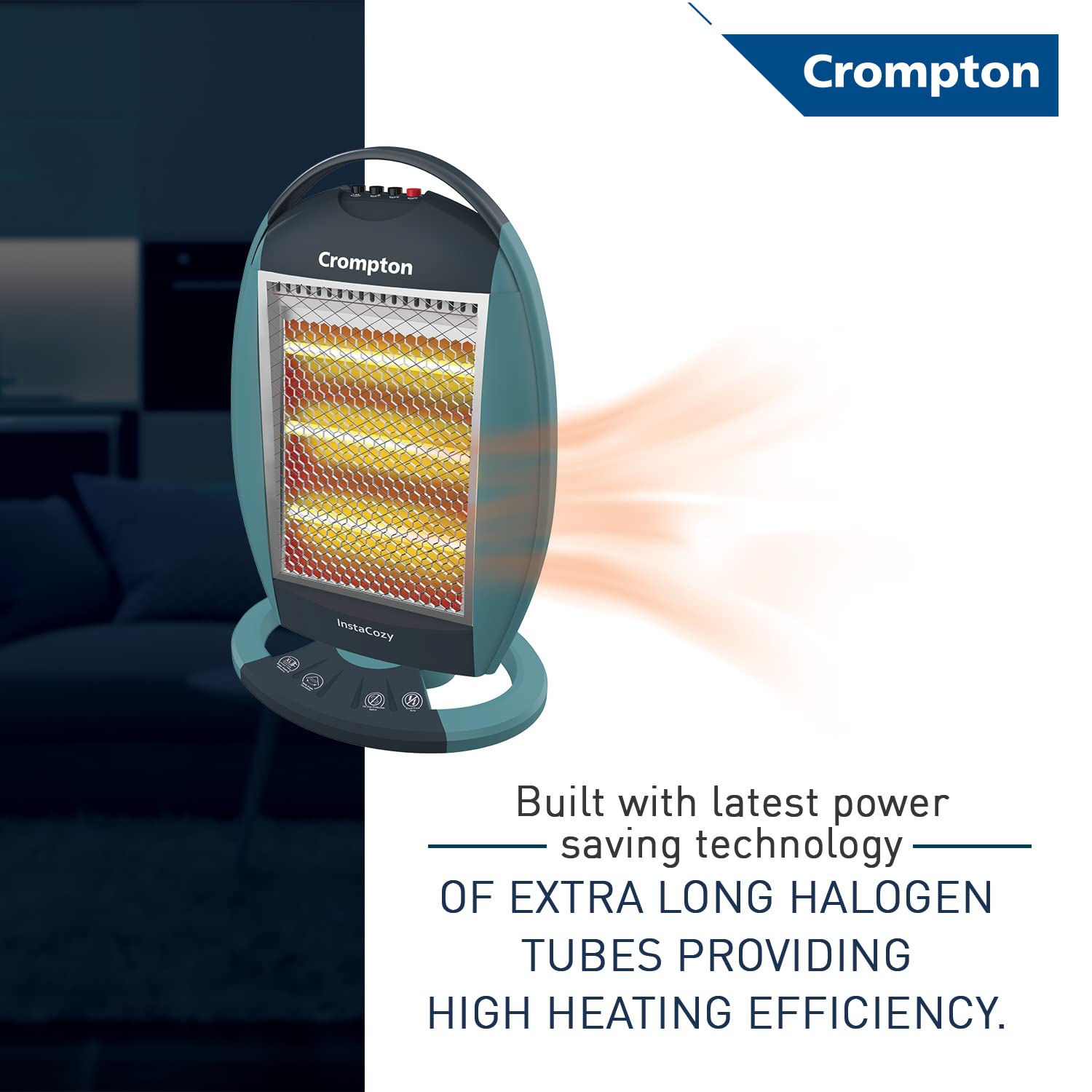 Crompton InstaCozy room heater comes with the latest power saving technology of extra long halogen tubes providing high heating efficiency