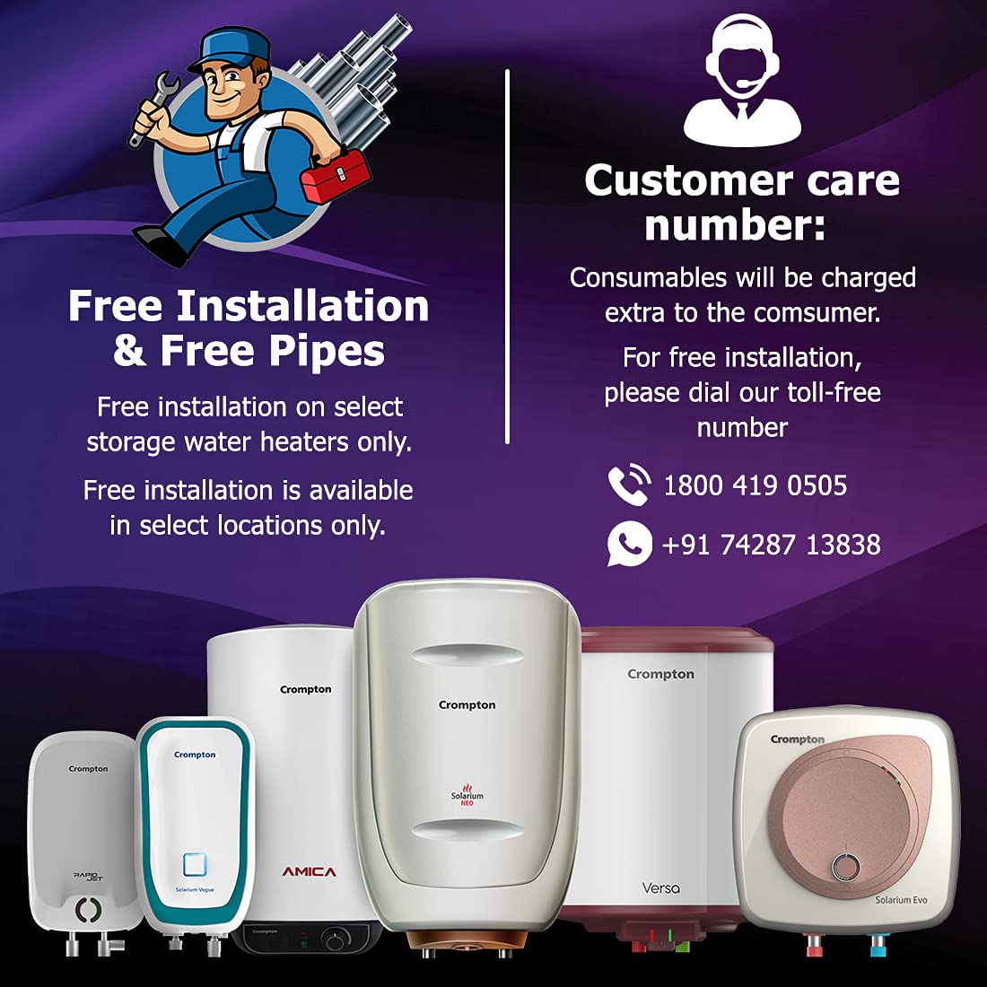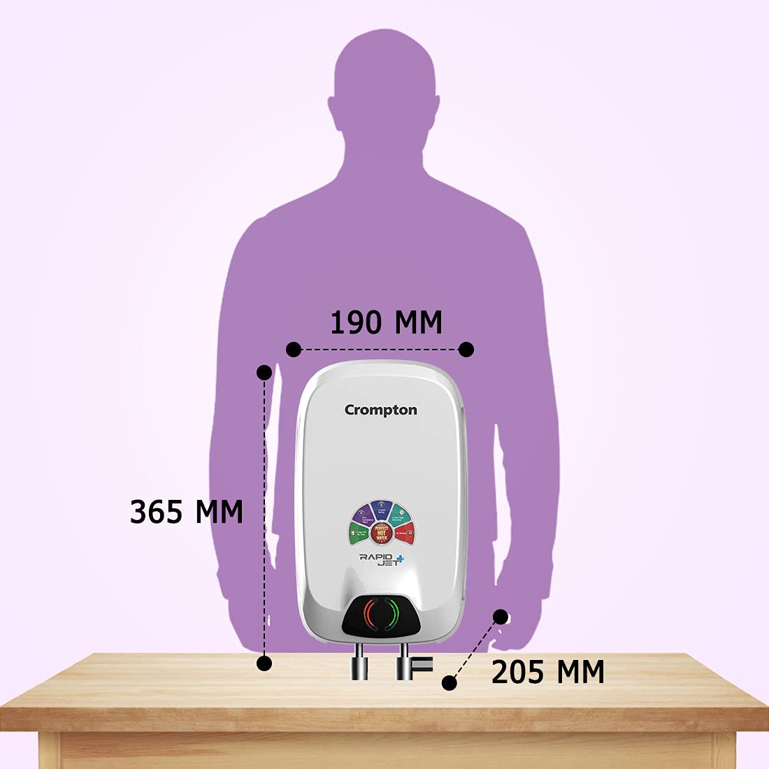 Crompton Instant Water Heaters come with Capillary Thermostat, automatic Thermal Cut-Off, a Pressure Release Valve and a fusible plug to give 4 layers of safety.