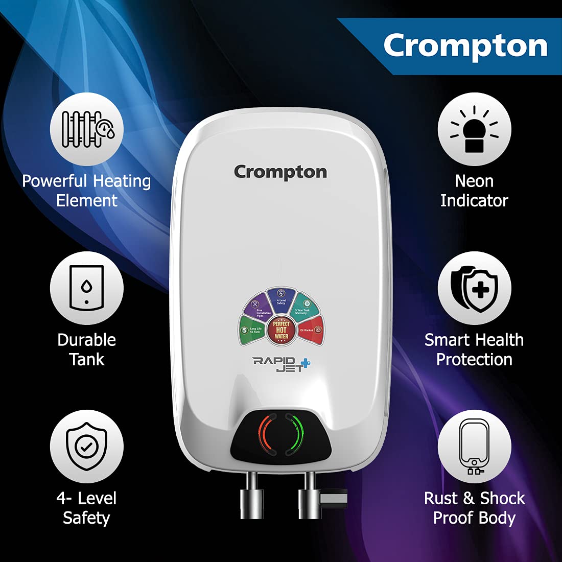 Crompton Rapid Jet Plus 3-L Instant Water Heater with Advanced 4 level Safety with Free Installation and Connection Pipes (White) (AIWH-3LRPJPL3K5Y)