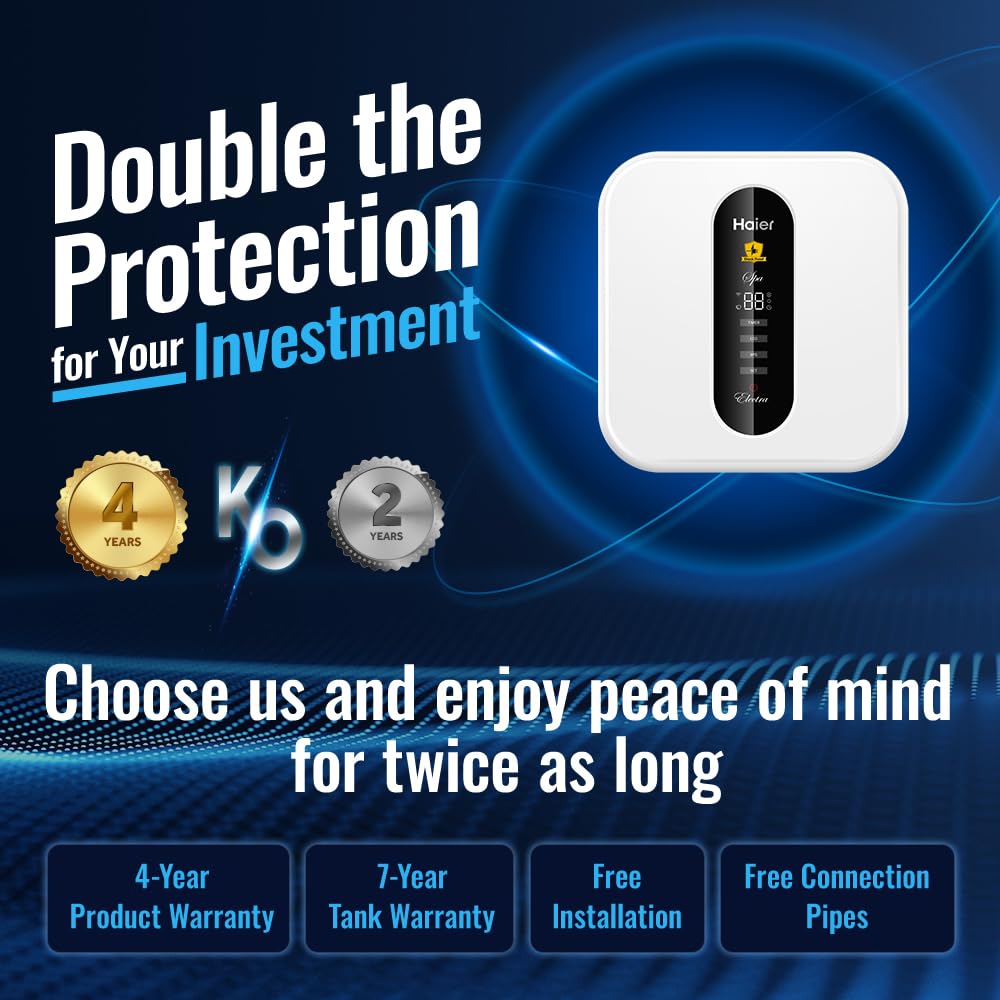 Save Your Cost: Free installation and Pipes, save your money. Enjoy peace of mind with a 4 years water heater and 7 years inner tank warranty by Haier, no worries to buy.