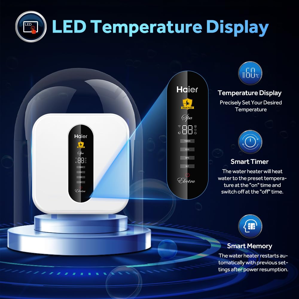 Comfort: More fresh shower by U-Turn Flow technology, Experience consistent and luxurious hot water with Haier Geyser’s advanced features. Enjoy the perfect temperature for refreshing showers and relaxing baths.